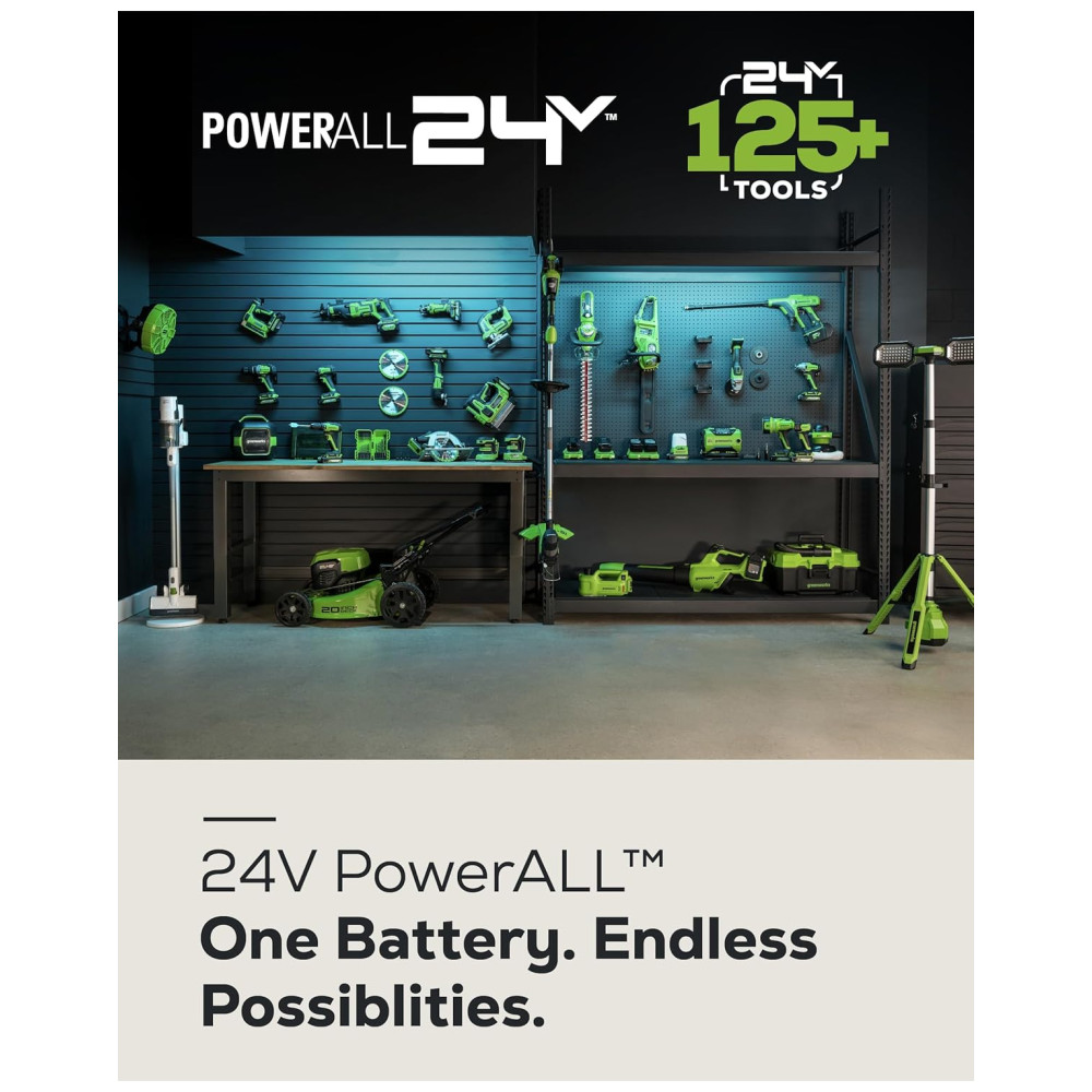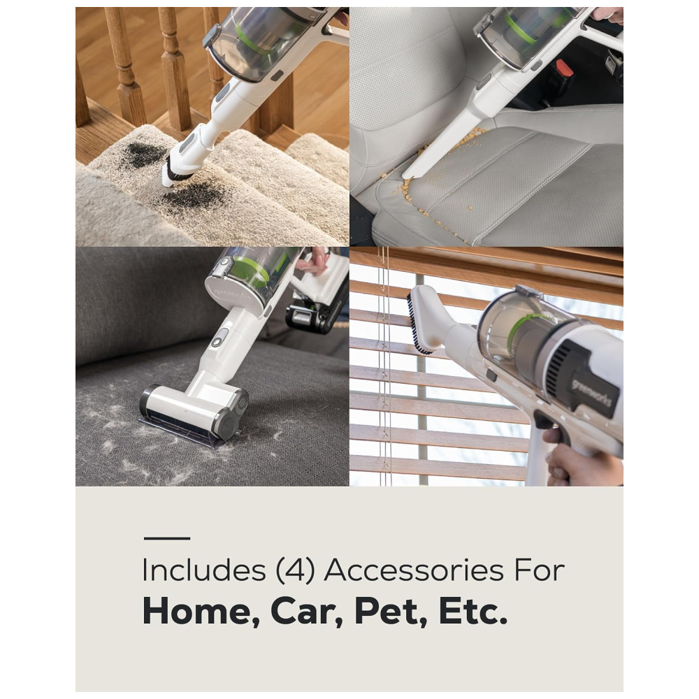 Apresentando o Aspirador de Pó Sem Fio Greenworks 24V Brushless, uma solução avançada e versátil para todas as suas necessidades de limpeza.