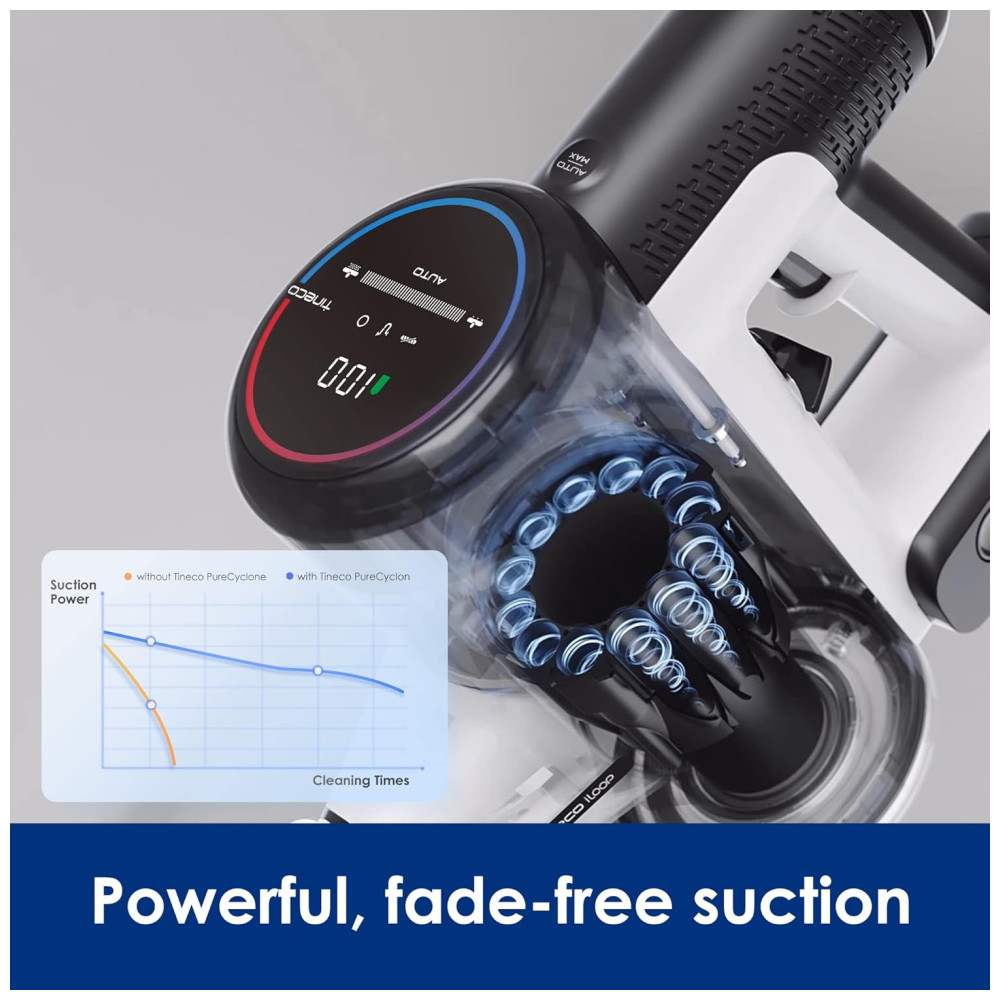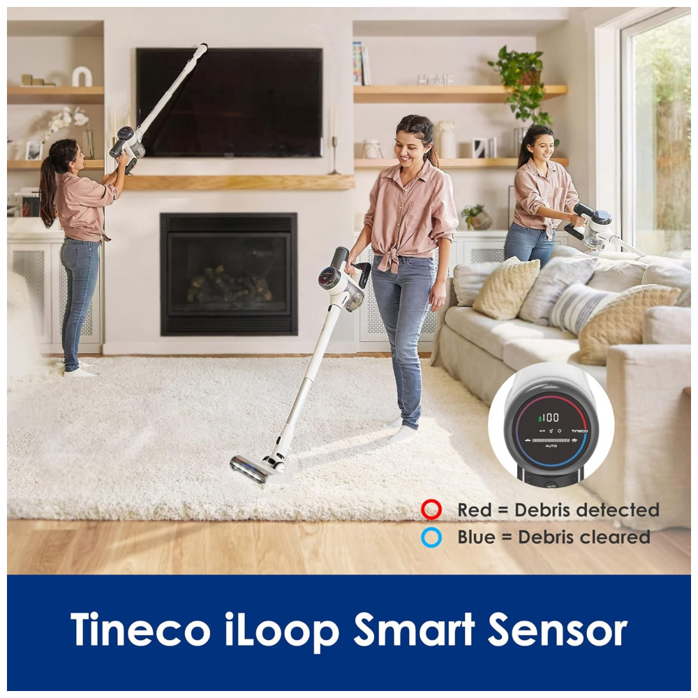 Sensor Inteligente TINECO iLOOP: O aspirador ajusta automaticamente a potência de sucção de acordo com a sujeira detectada.