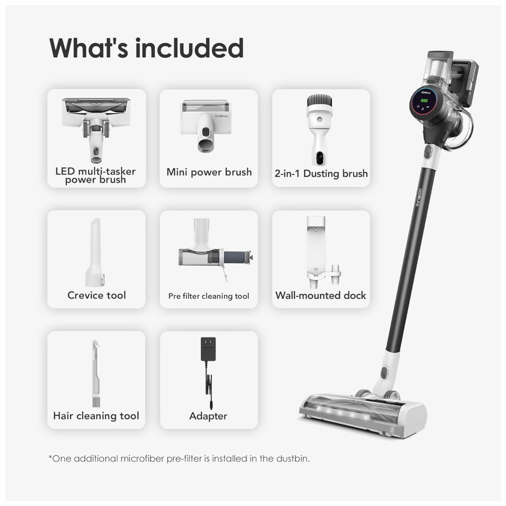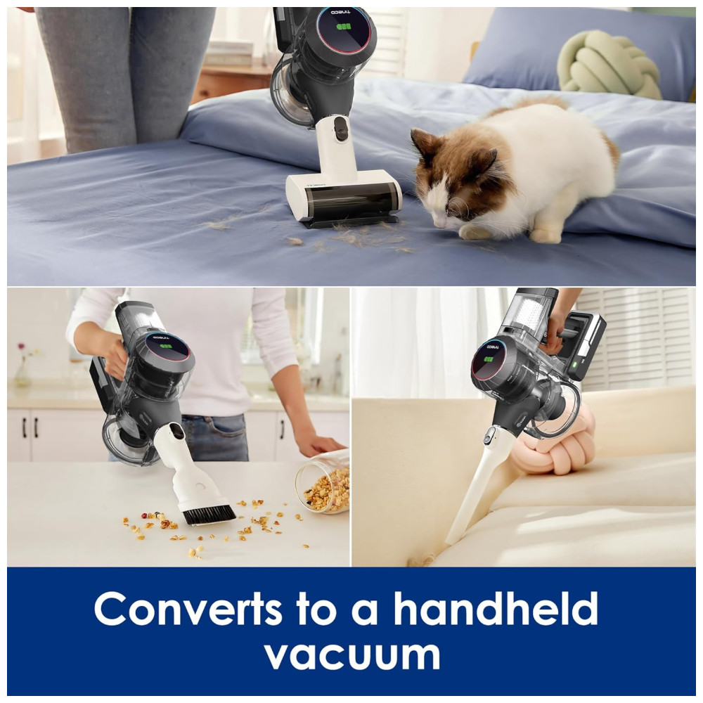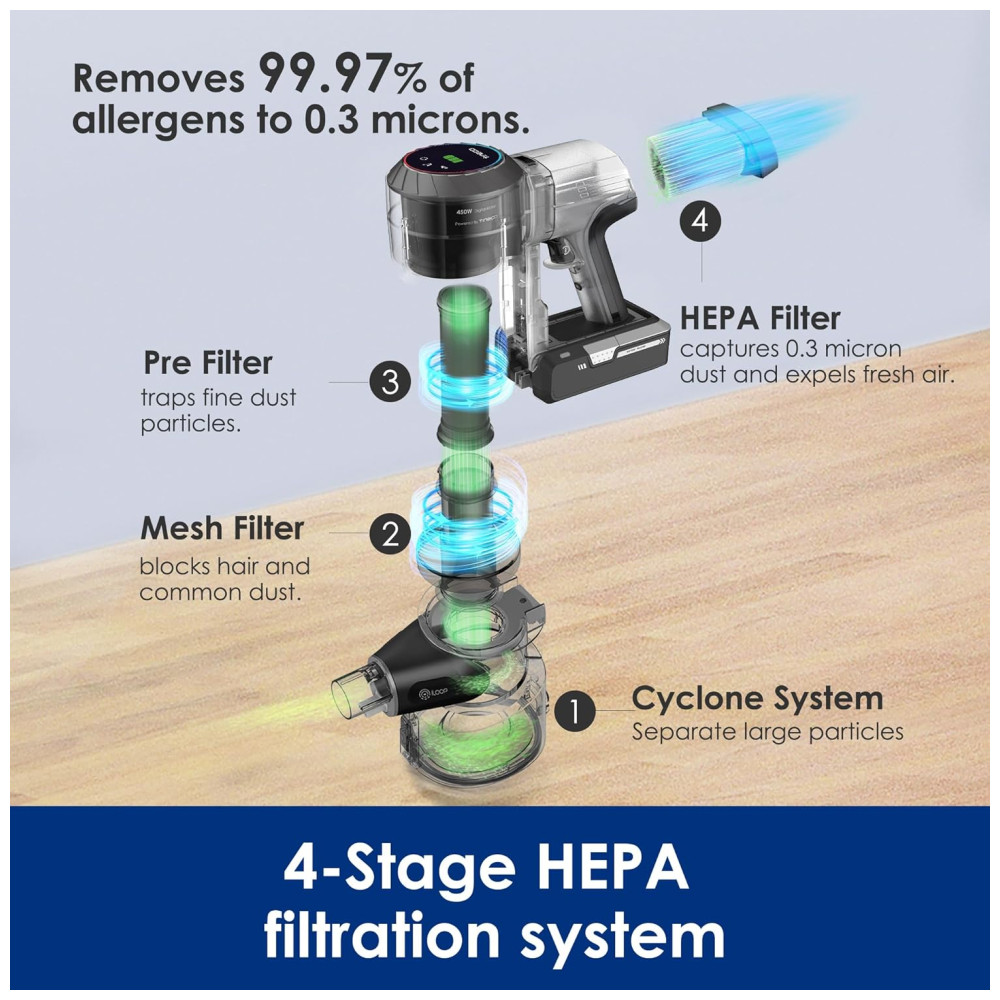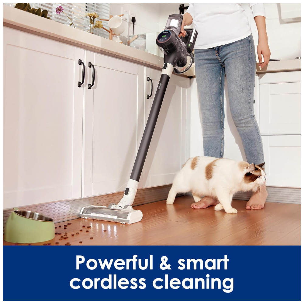 Com um motor digital de alto desempenho e ultra-silencioso que oferece 130W de sucção forte, você pode limpar silenciosamente, sem perturbar a família e os animais de estimação.