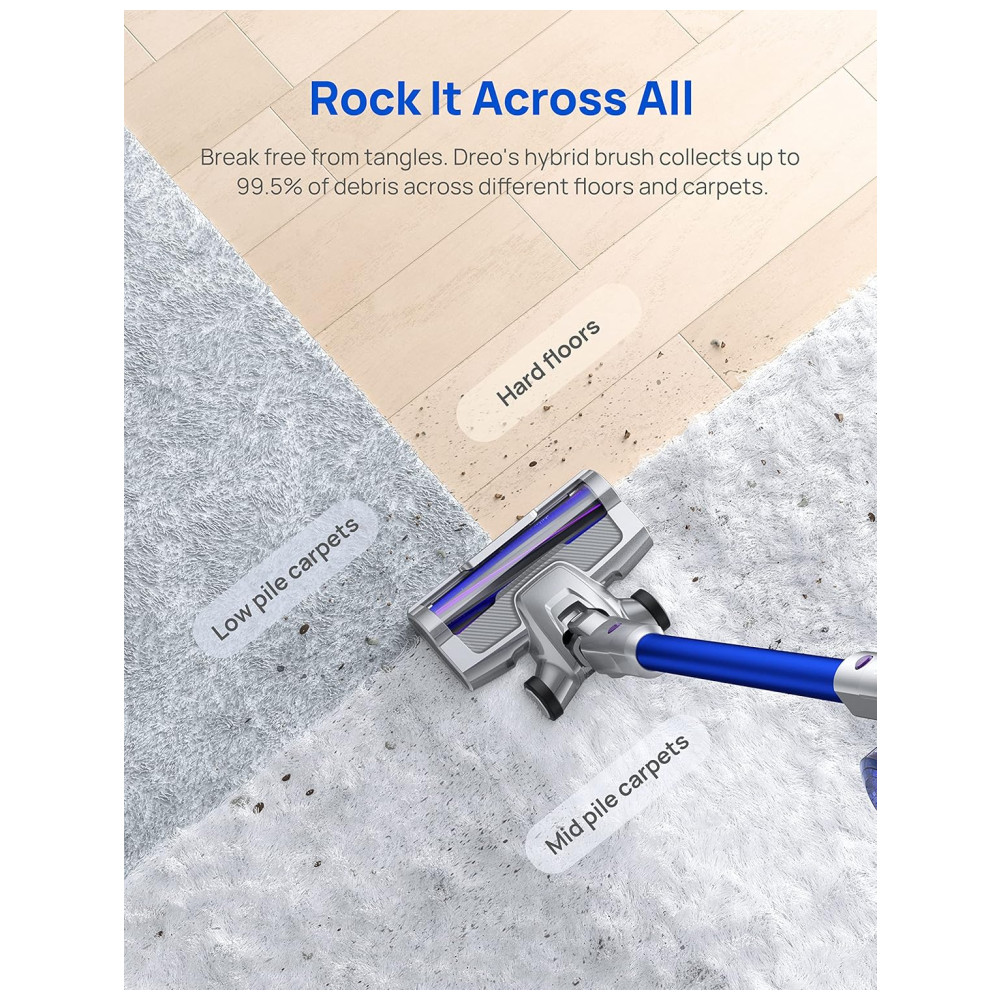 Remove toda a sujeira teimosa: O cabeçote motorizado avançado do aspirador Dreo adiciona um poder extra de escovação para capturar pelos de animais e sujeiras profundamente incrustadas em tapetes e carpetes de uma só vez.