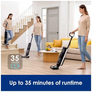 Leve e auto-propulsionado, este aspirador permite que você se movimente livremente pela casa, facilitando a limpeza em escadas e cantos. Com uma autonomia de até 35 minutos sem interrupções, você pode limpar toda a sua casa com facilidade.