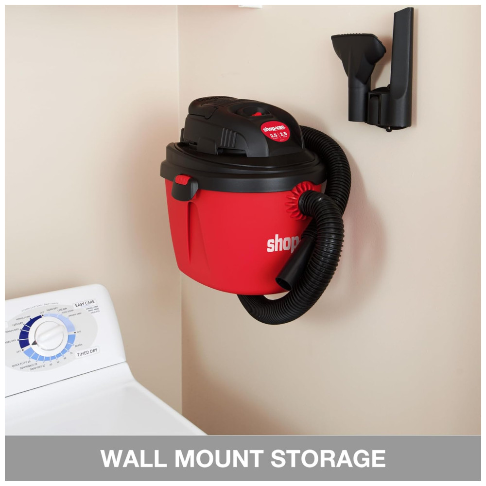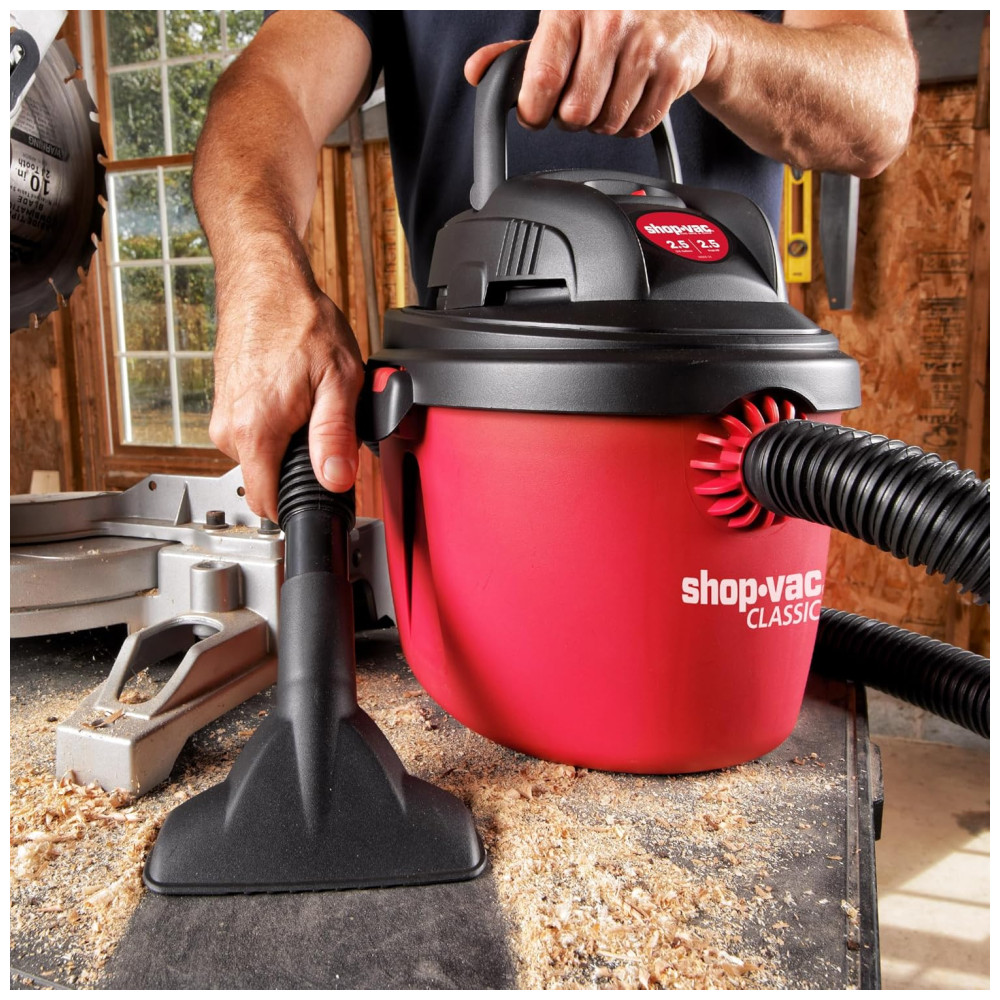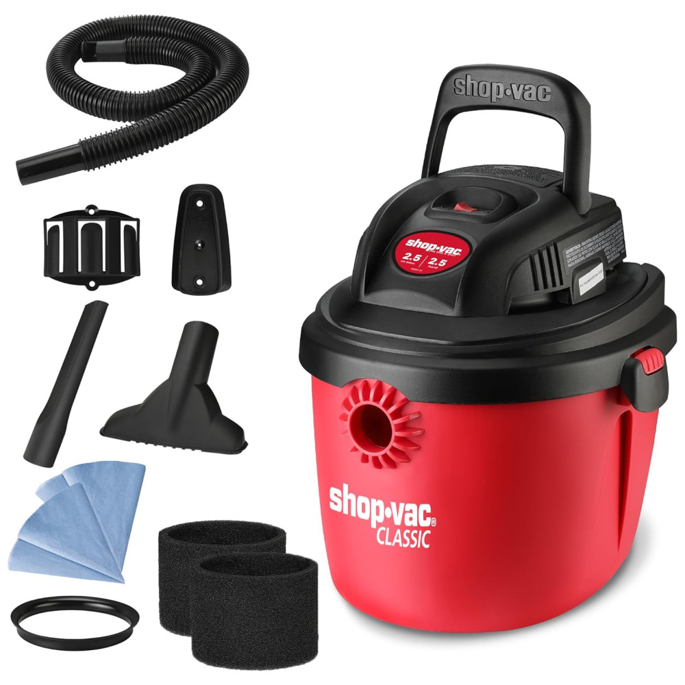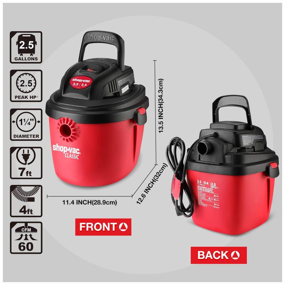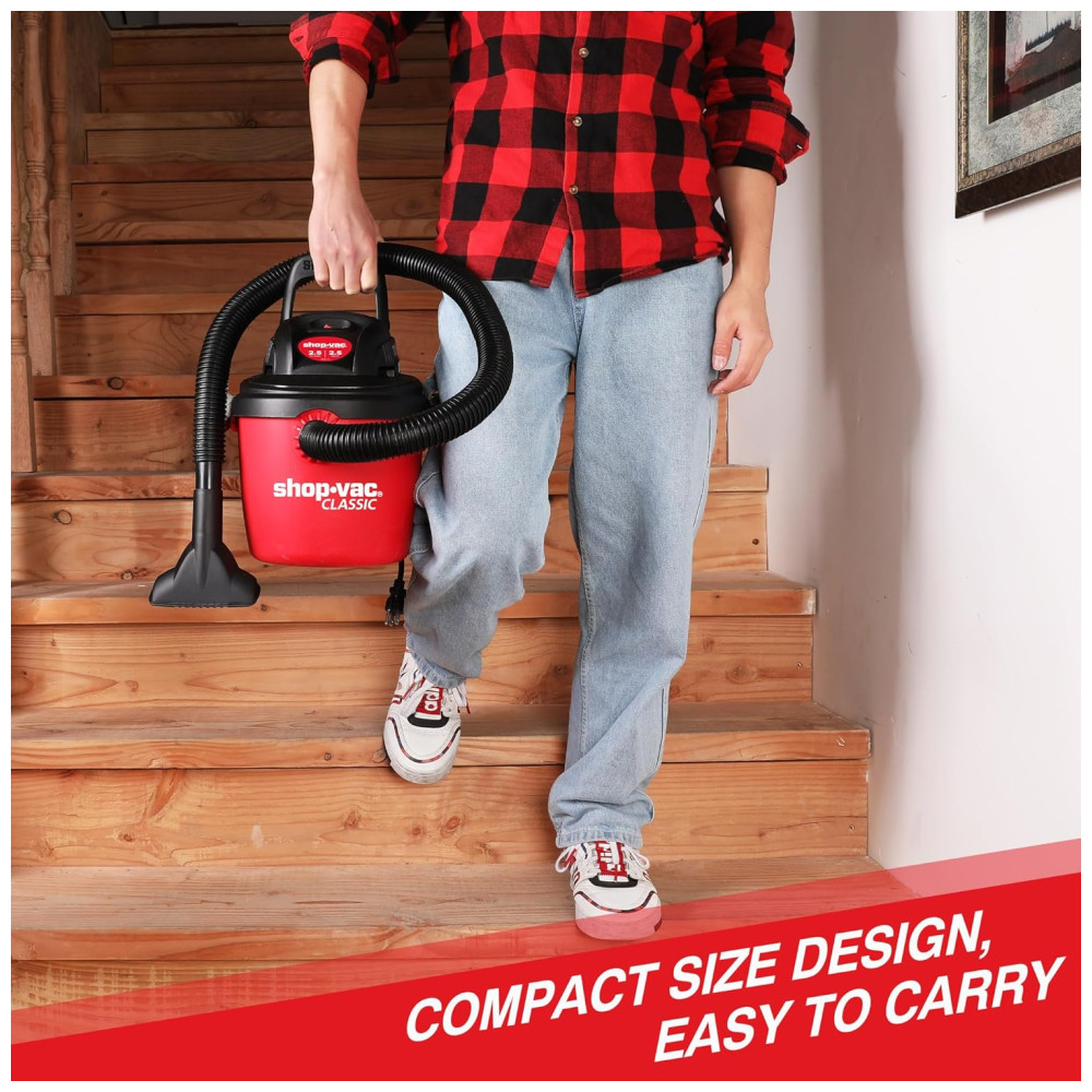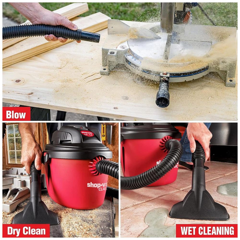Este aspirador portátil Shopvac é a escolha perfeita para projetos de limpeza em casa, garagem, oficina e veículo. Com um desempenho poderoso de 2,5CV de potência e 9,48 litros de vácuo, oferece uma forte sucção a seco e função de sopro, permitindo que você limpe poeira, lascas de madeira, detritos ou esgoto úmido. Além disso, pode ser facilmente convertido em um soprador de ar potente de 60cfm, que você pode usar para soprar folhas ou limpar o pátio.