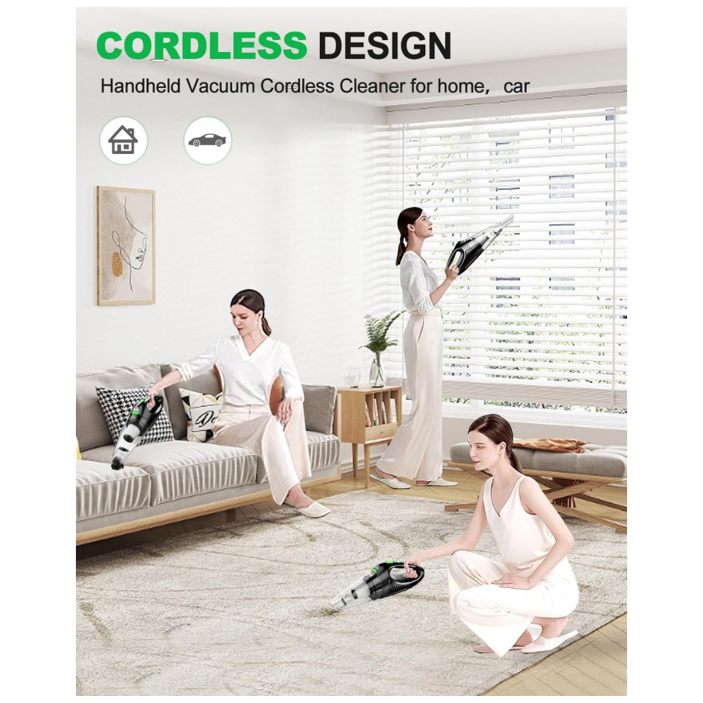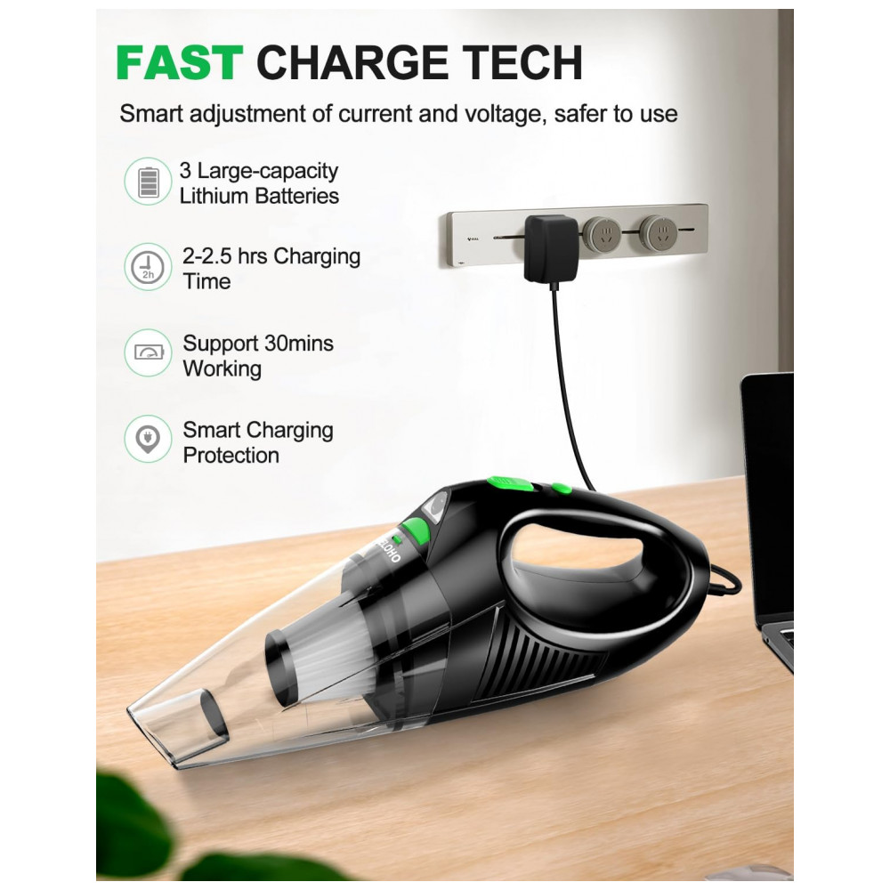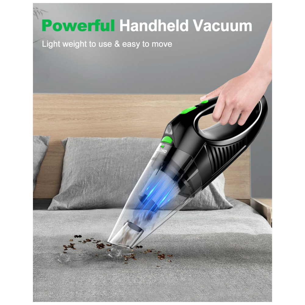Aspirador de Pó Portátil sem Fio Recarregável para Carro e Móveis 12V 120W MELOHO Preto e Verde
