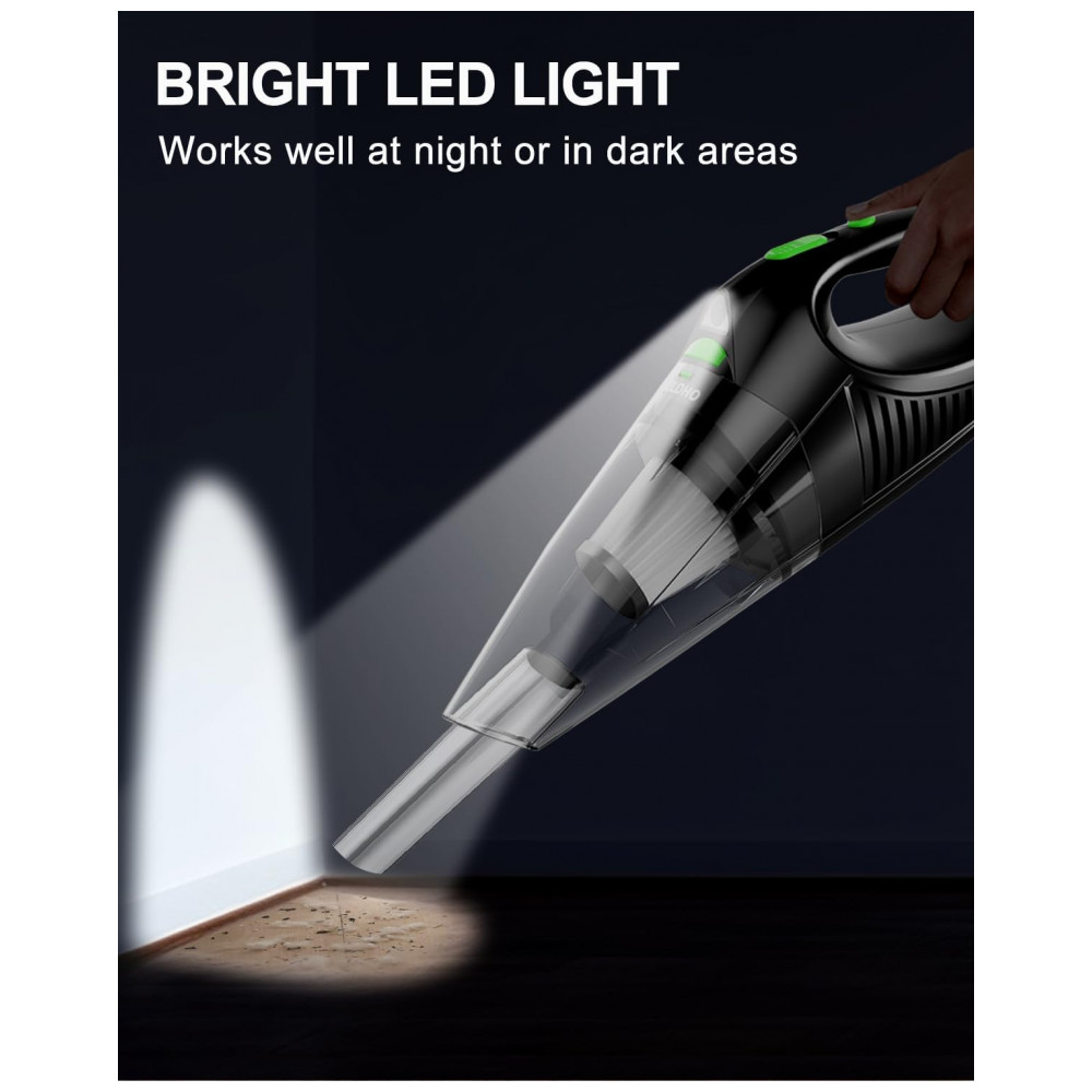 ILUMINAÇÃO LED, SEM CANTO ESCURO Este aspirador de carro portátil de alta potência possui uma luz LED, a luz de alta brilho permite que você veja claramente toda a poeira em cantos escuros, ajudando você a limpar facilmente todos os lugares, em casa , carro , escritório. Crie um ambiente limpo e arrumado para você e sempre tenha um clima descontraído e feliz.