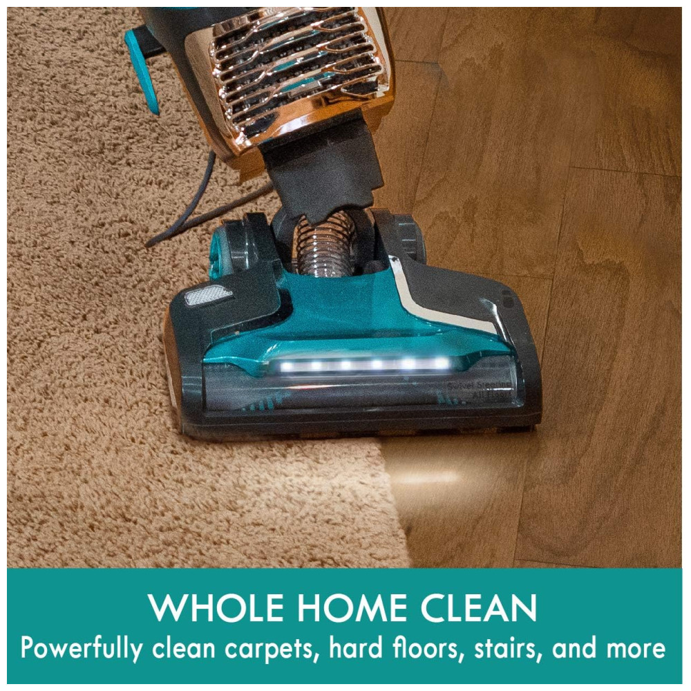 Leve e manobrável, pesando apenas 6,35 kg e com direção giratória, este aspirador proporciona uma limpeza eficiente em toda a sua casa. Os ajustes de altura garantem um fluxo de ar ótimo e eficiência de limpeza, enquanto os faróis de LED iluminam o caminho para uma casa mais limpa.