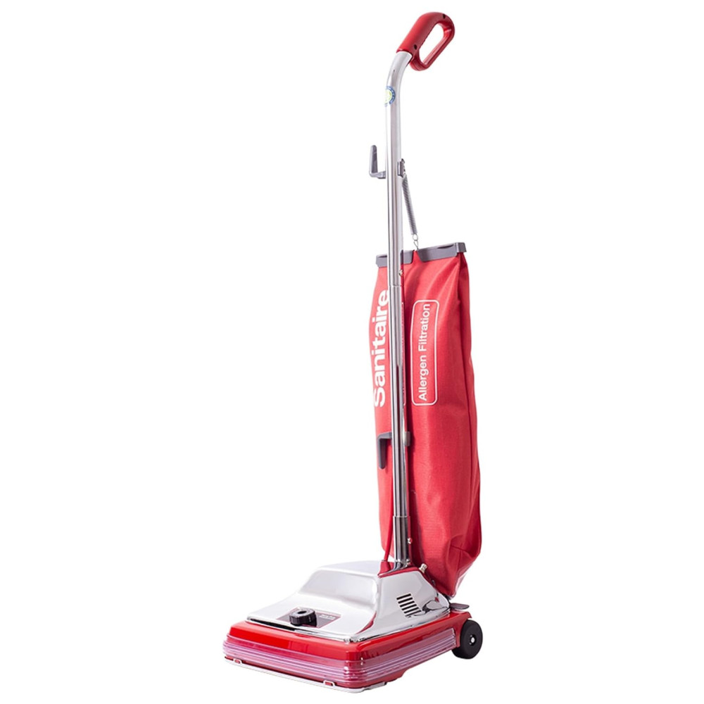 O aspirador comercial vertical Sanitaire TRADITION SC888N é uma máquina de limpeza de alto desempenho projetada para uso pesado. Com um capô cromado durável, este aspirador é ideal para ambientes difíceis. Seu motor de vida útil prolongada oferece mais de 2.000 horas de poder de limpeza comercial, o que é 5 vezes a vida útil do motor de um aspirador doméstico médio em comparação com o BISSELL CleanView Swivel. O saco descartável de grande capacidade comporta até 6,0 litros de sujeira e detritos para menos interrupções durante a limpeza. Além disso, o TRADITION SC888N é fácil de manter com recursos especiais como seu rolo de escova cromado com tiras de cerdas substituíveis e a câmara de ventilador Quick KleenTM que ajuda você a ver e limpar obstruções conforme elas acontecem. A estrutura durável inclui uma alça em forma de laço para maior conforto e recursos exclusivos de manutenção, como o rolo de escova sem ferramentas e a substituição da correia, a câmara do ventilador Quick KleenTM e o sistema de liberação do saco com clipe de metal.