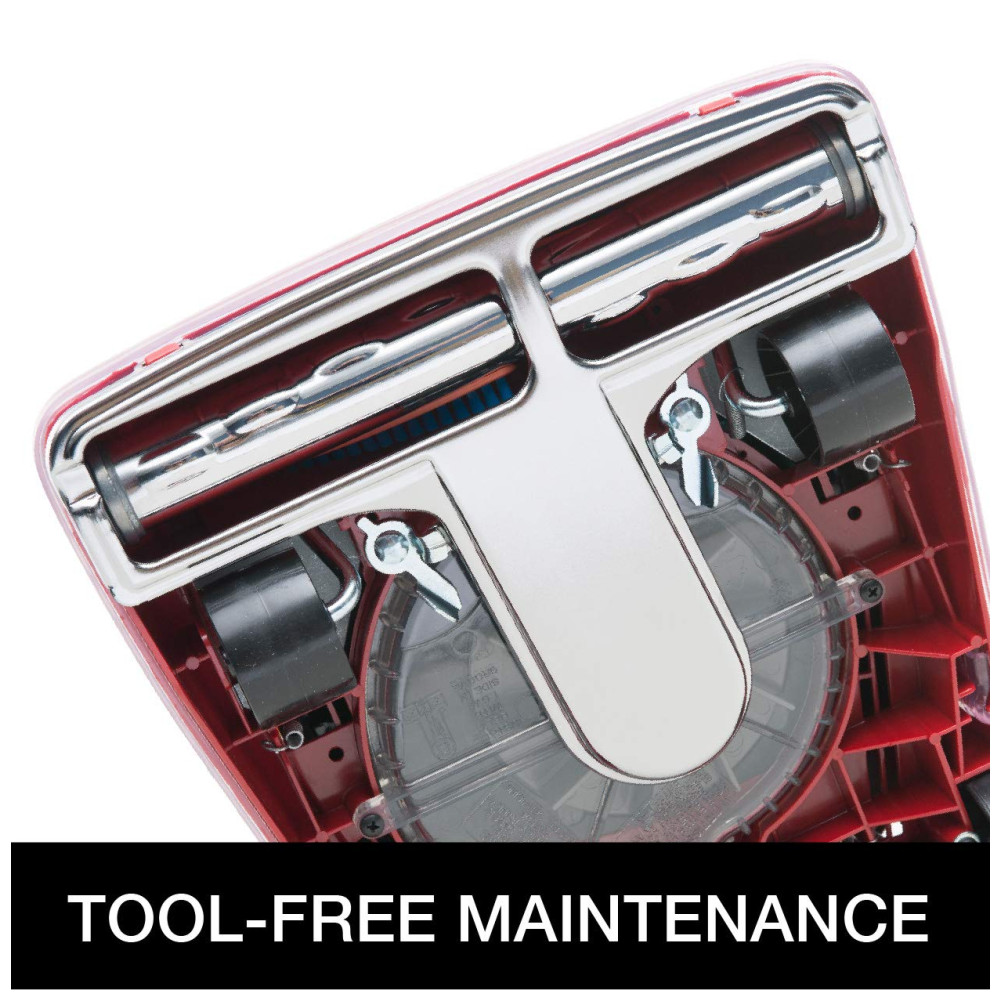 Fácil Manutenção: Substituição da escova sem ferramentas, substituição da correia e sistema de liberação da bolsa com clipe de metal para facilidade de uso e manutenção.