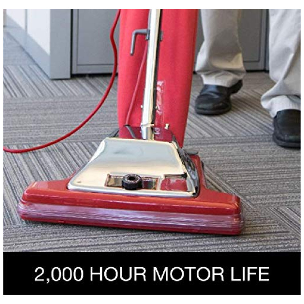 O aspirador vertical Sanitaire SC899H possui um amplo caminho de limpeza de 40 CM e um motor de 840 watts que produz 145 CFM, tornando-o ideal para limpeza de nível comercial. Sua construção é feita com capô cromado durável, o que garante uma vida útil de 2.000 horas para o motor. O saco de agitação Sanitaire SC899H tem capacidade de 16.79 litros, permitindo uma limpeza mais longa com menos tempo de inatividade. Além disso, o produto vem com 5 sacos sintéticos estilo ST 5PK ST Style Sanitaire Vacuum Bag, que cabem nos modelos SC889, SC688 e SC888 Sanitaire. O cabo de alimentação do aspirador é de 15,2 metros, o que permite uma ampla faixa de limpeza com trocas mínimas de tomada.