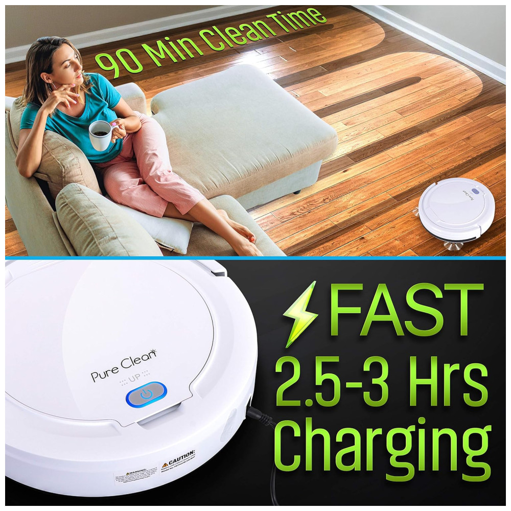 TEMPO DE EXECUÇÃO DE 90 MINUTOS O poder de sucção deste robô aspirador de pêlos de animais é forte o suficiente para levantar a poeira minúscula geralmente deixada por aspiradores regulares e tem uma bateria recarregável de íon de lítio que pode dar a você até 90 minutos de funcionamento. Tempo