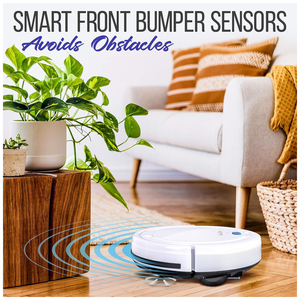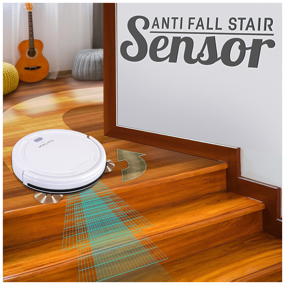DETECÇÃO DE OBSTÁCULOS Os limpadores robóticos domésticos PureClean apresentam detecção de obstáculos para pára choques e limpa ao redor de objetos ou móveis. Também equipado com sensores anti queda e proteção do pára choque para evitar que o robovac caia das escadas