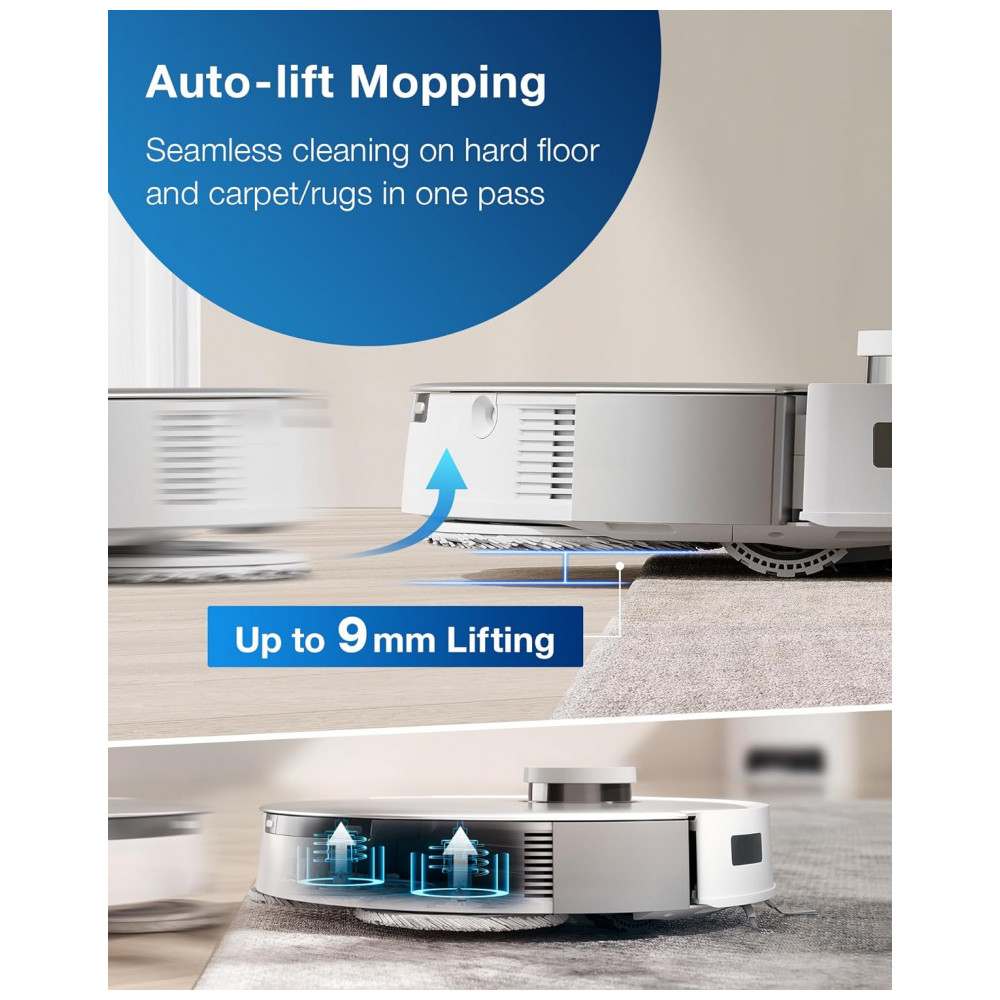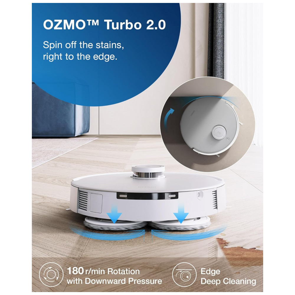 Aumente o nível da sua experiência de esfregar. O novíssimo sistema de mopa de levantamento automático levanta as placas de mopa quando um carpete é detectado, mantendo os tapetes e carpetes limpos e secos. O esfregão giratório pressurizado OZMO Turbo oferece capacidade de lavagem premium e limpa até a borda, dando aos seus pisos uma limpeza melhor do que os esfregões planos e vibratórios.