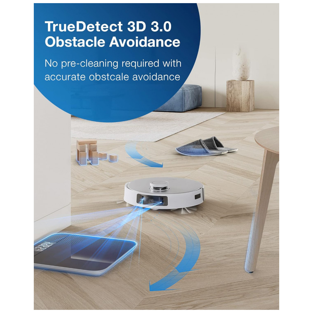 Advanced TrueDetect 3D 3.0 Prevenção de Objetos. Com base na tecnologia de luz estruturada e algoritmos de imagem 3D, o T20 OMNI usa varredura e detecção 3D em tempo real para evitar o nível milimétrico, capaz de identificar e evitar perigos potenciais no solo, como pequenos brinquedos, fios, garantindo uma limpeza suave e tranquila, mesmo no escuro.
