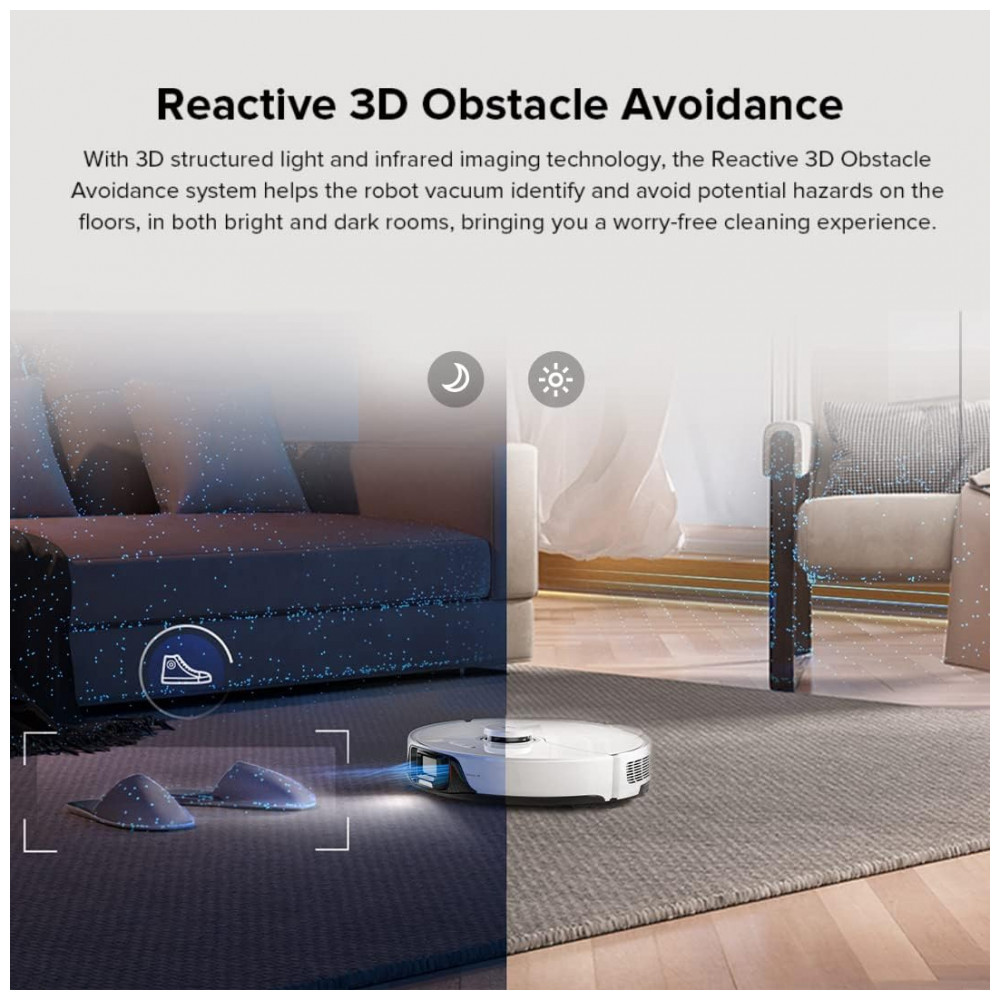 Inteligente o suficiente para ficar longe de problemas com luz estruturada em 3D e tecnologia de imagem infravermelha, o Roborock S8 pode facilmente identificar e evitar perigos potenciais no chão, tanto em salas claras quanto escuras, proporcionando a você uma experiência de limpeza sem preocupações.