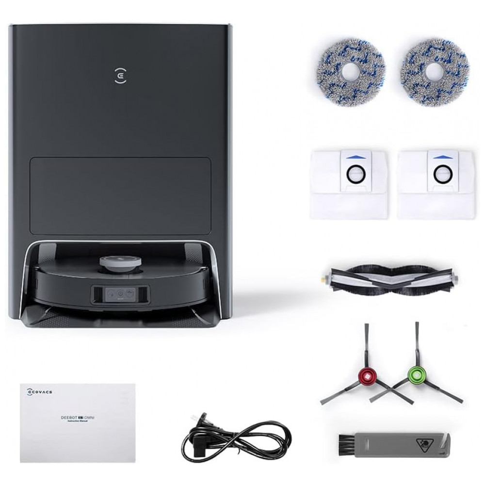 ESTAÇÃO Omni tudo em um. Um primeiro na indústria. Depois de aspirar, o seu DEEBOT regressa à estação e esvazia automaticamente o caixote do lixo. Após a limpeza, lava automaticamente as cabeças da esfregona e seca as com ar quente. Experimente um nível totalmente de liberdade de limpeza.