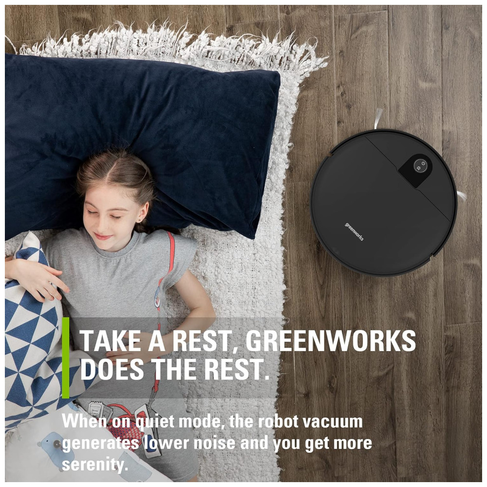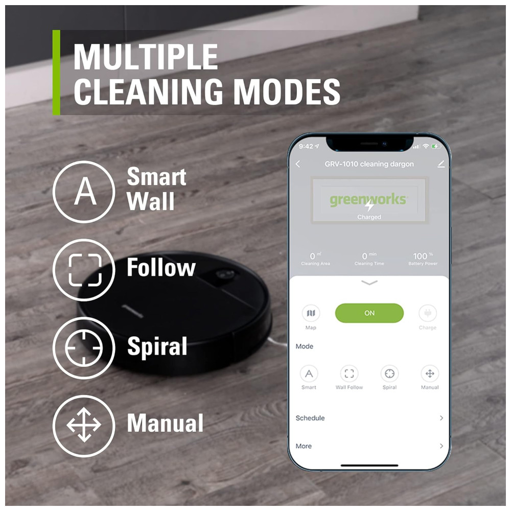 Aspirador de Pó Robô Inteligente Capacidade 600 mL Recarregável GREENWORKS GRV 1010 Preto