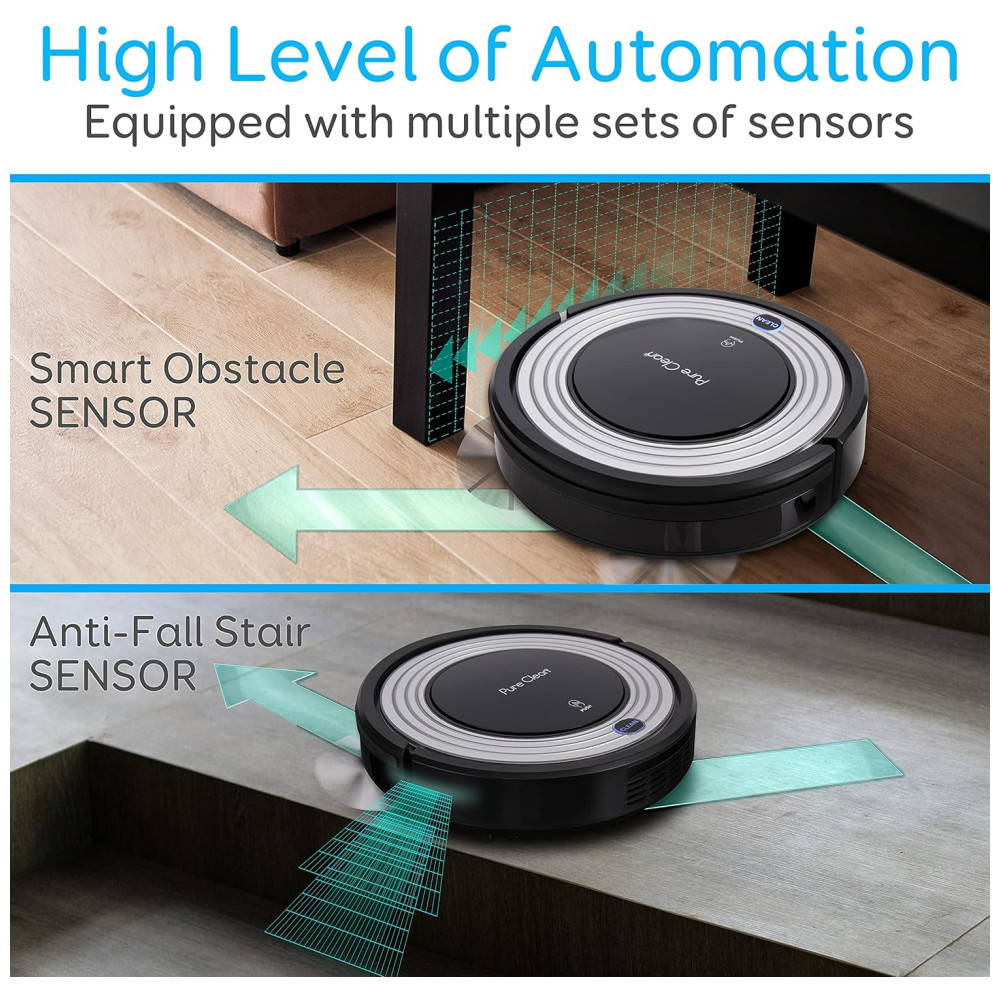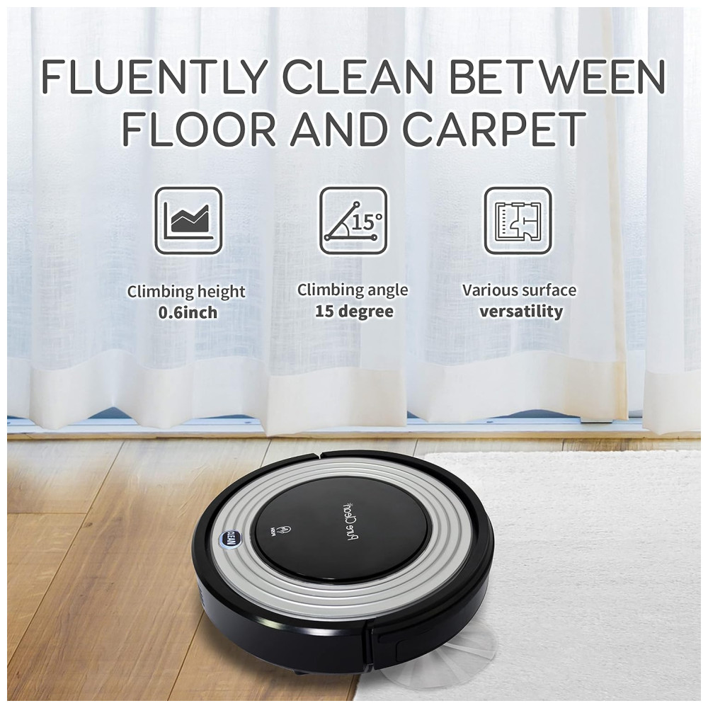 LOW MINI PROFILE o robô aspirador sem fio possui um perfil baixo de 3,1 que viaja por qualquer sala e é pequeno o suficiente para caber embaixo do sofá ou da cama em sua casa. O robo vac possui sensores de detecção automática de penhascos que desviarão o Bot para longe de escadas ou saliências