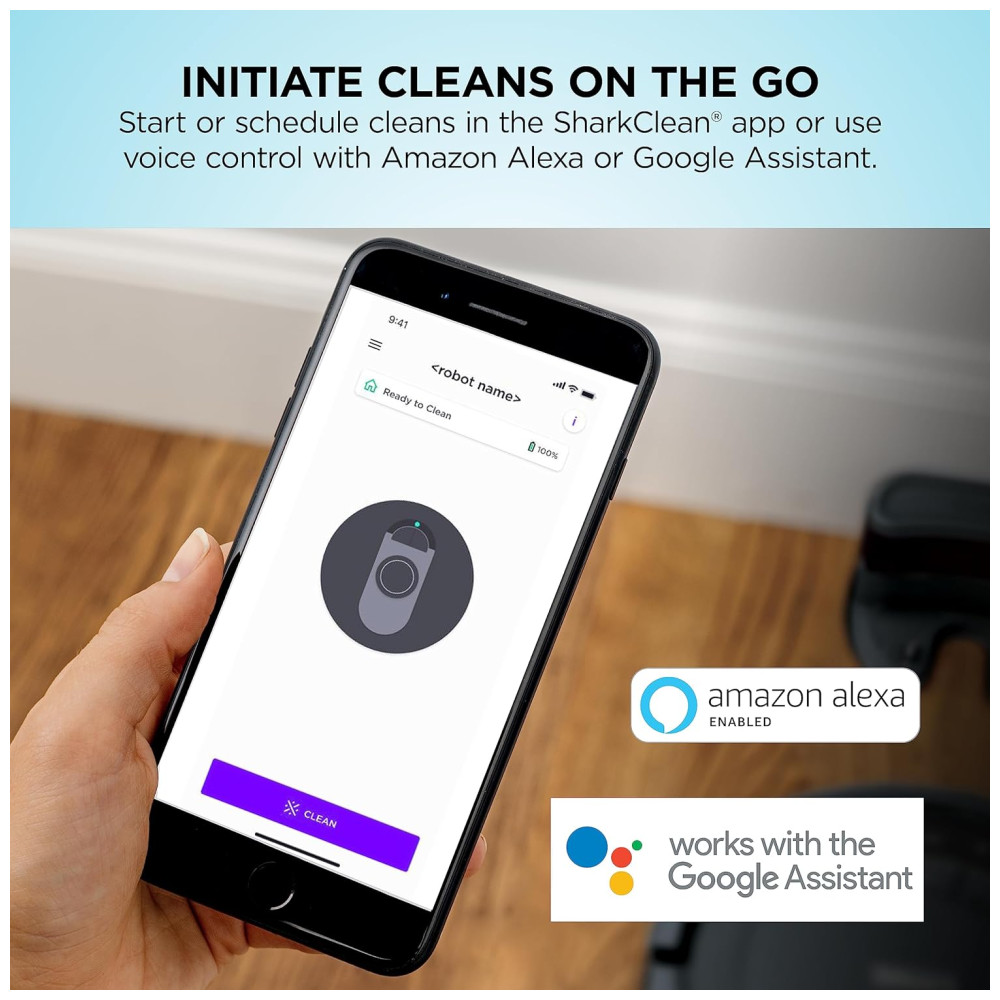 LIMPE DO SEU TELEFONE O aplicativo SharkClean permite que você inicie e pare a limpeza e programe o seu robô para limpar quando quiser.
