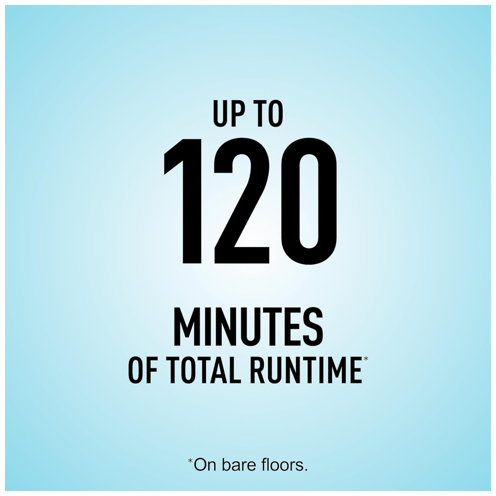 120 MINUTOS DE FUNCIONAMENTO Limpeza em toda a casa, do chão ao carpete por até 2 horas.