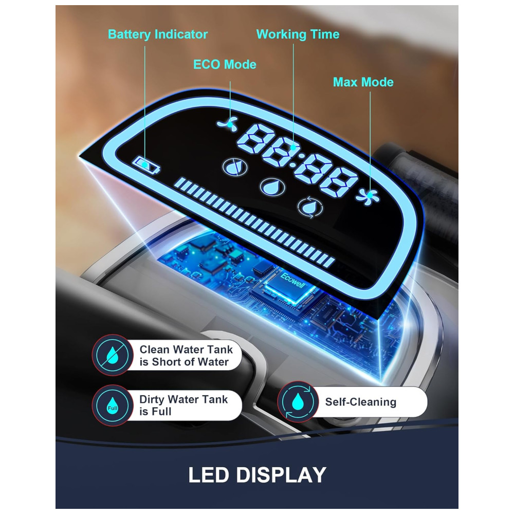 Design Leve e Flexível: Projetado para a agilidade, este aspirador e esfregão sem fio é incrivelmente leve, permitindo que você manobre facilmente ao redor de móveis e alcance cantos esquecidos com sua direção articulada. Garanta uma limpeza completa em todos os cantos e frestas da sua casa ou escritório sem esforço.