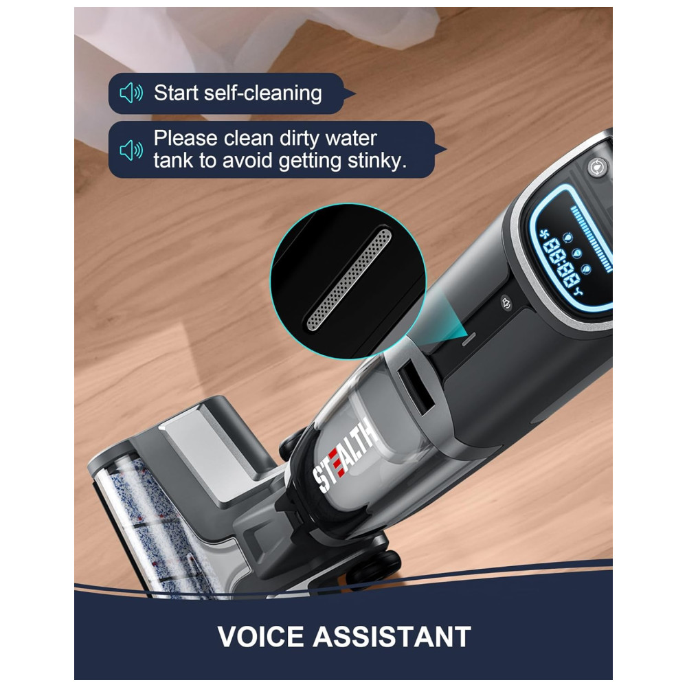 Autolimpeza e Assistência por Voz: Diga adeus aos métodos tradicionais que deixam odores. O sistema de autolimpeza do Stealth ECVP01 simplifica a manutenção com apenas o toque de um botão. Além disso, um assistente de voz inteligente o guiará através de alertas práticos quando for necessário esvaziar ou reabastecer os tanques.