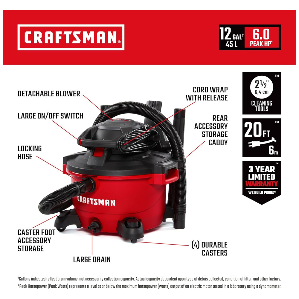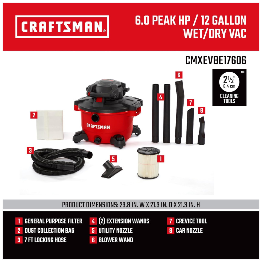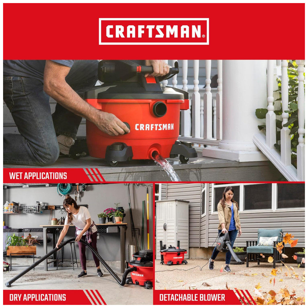 Aspirador de Pó Seco e Úmido 45L 6CV de potência com Soprador de Folhas 110v CRAFTSMAN CMXEVBE17606 Vermelho