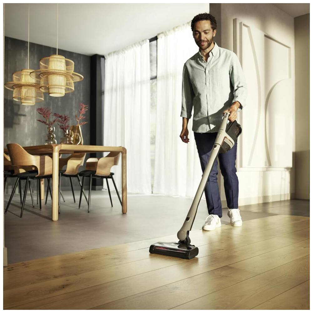 Detecção automática de piso: Este aspirador sem fio está equipado com uma escova elétrica inteligente extra larga que se adapta automaticamente à superfície que está sendo limpa, para limpeza rápida e sem esforço.