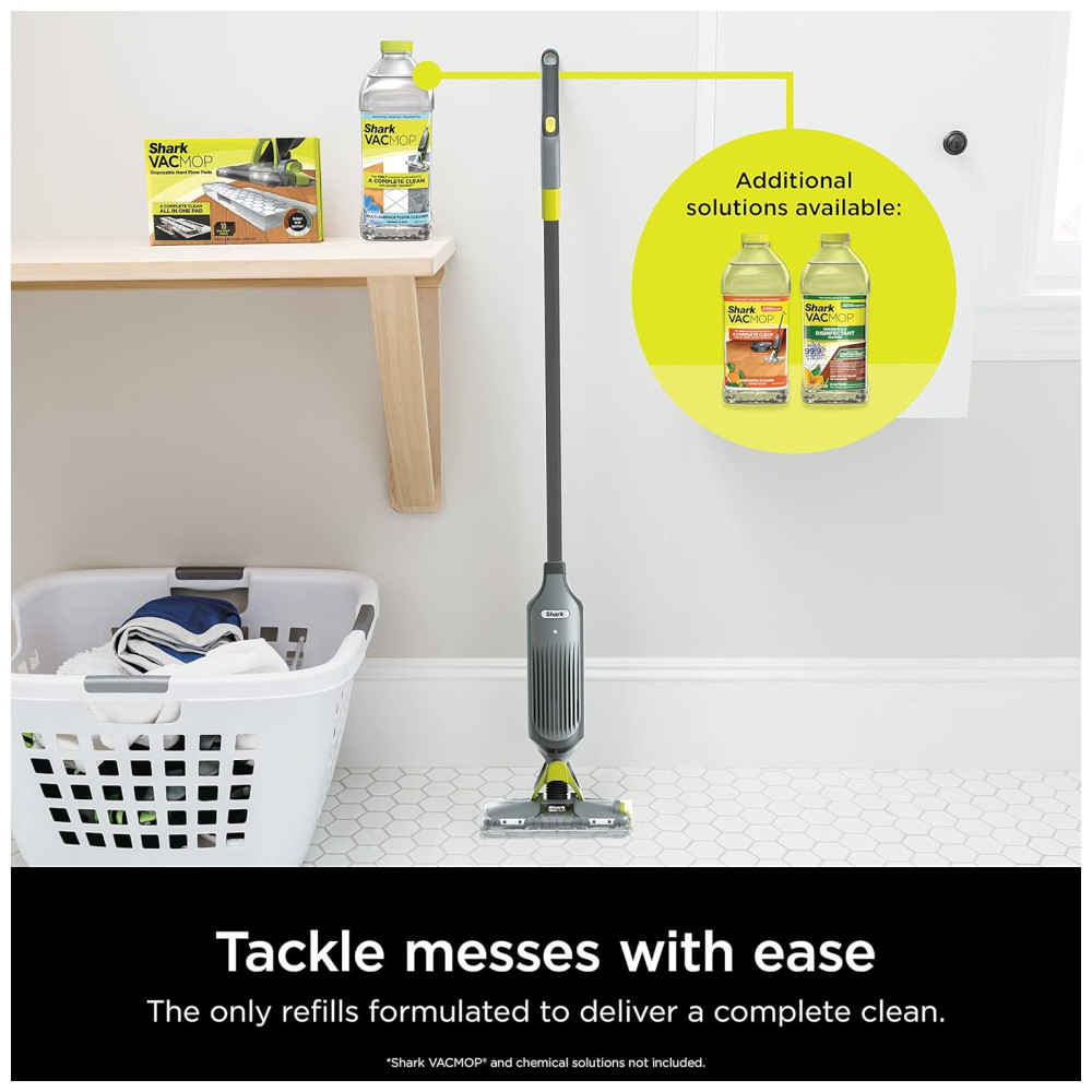 Conteúdo do Pacote: Inclui o Vacmop, carregador, 4 almofadas descartáveis e um frasco de solução de limpeza de 350 ml.