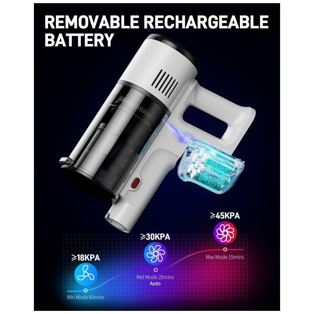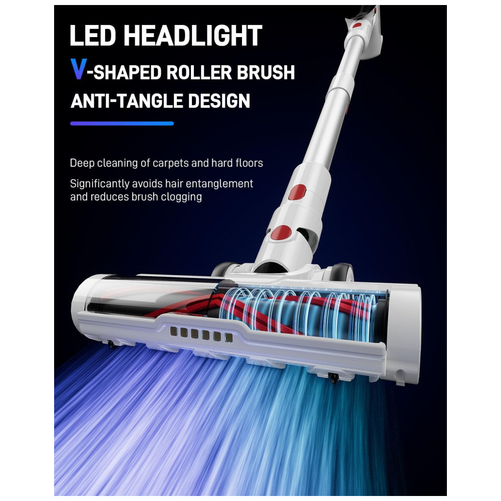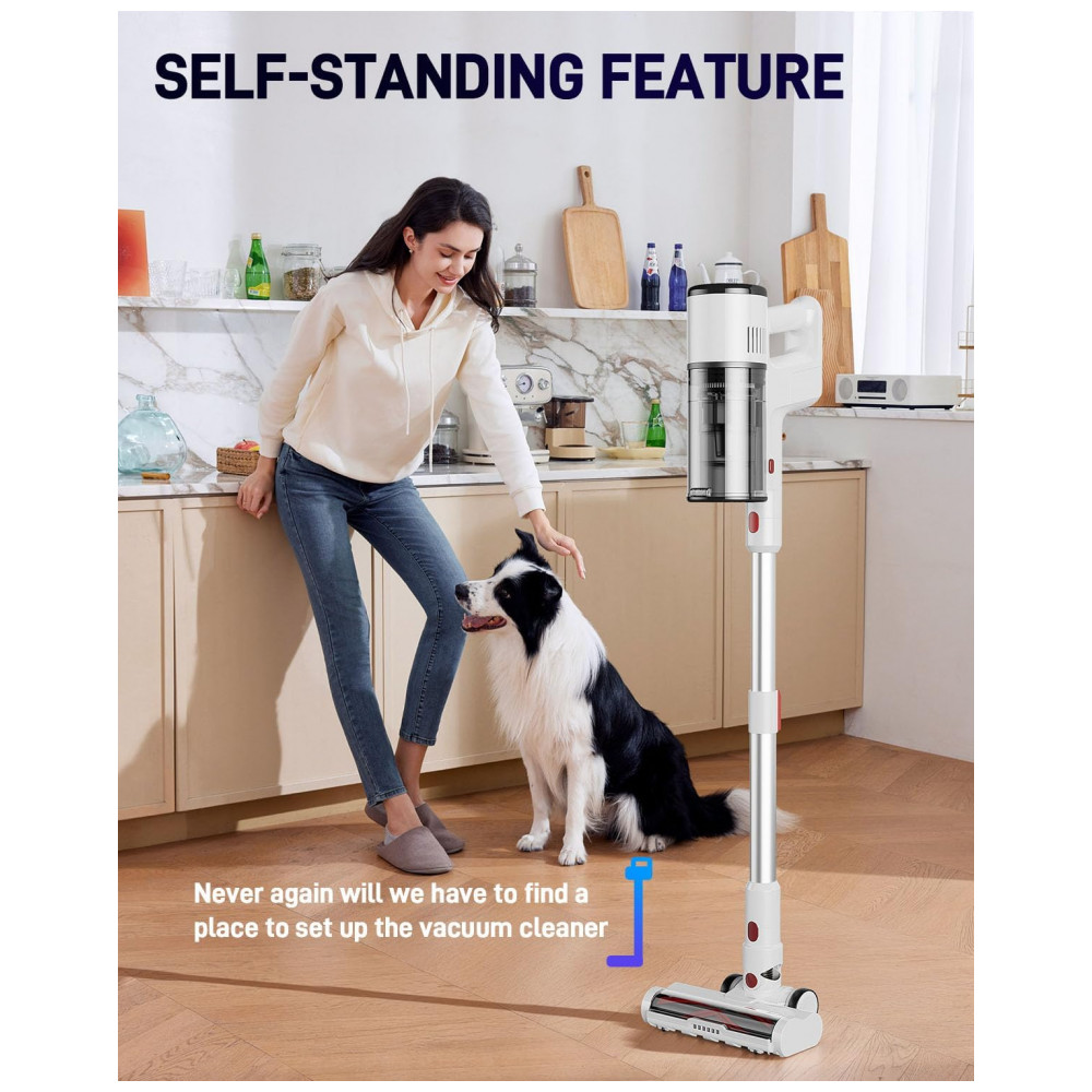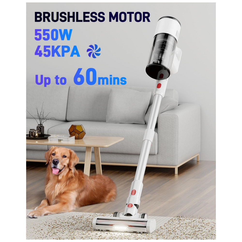 Aspirador de Pó Sem Fio 550W 45 KPa para Pelos de Animais Tapetes e Pisos de Madeira – 60 Min de Autonomia Filtro HEPA Leve e Recarregável – Branco