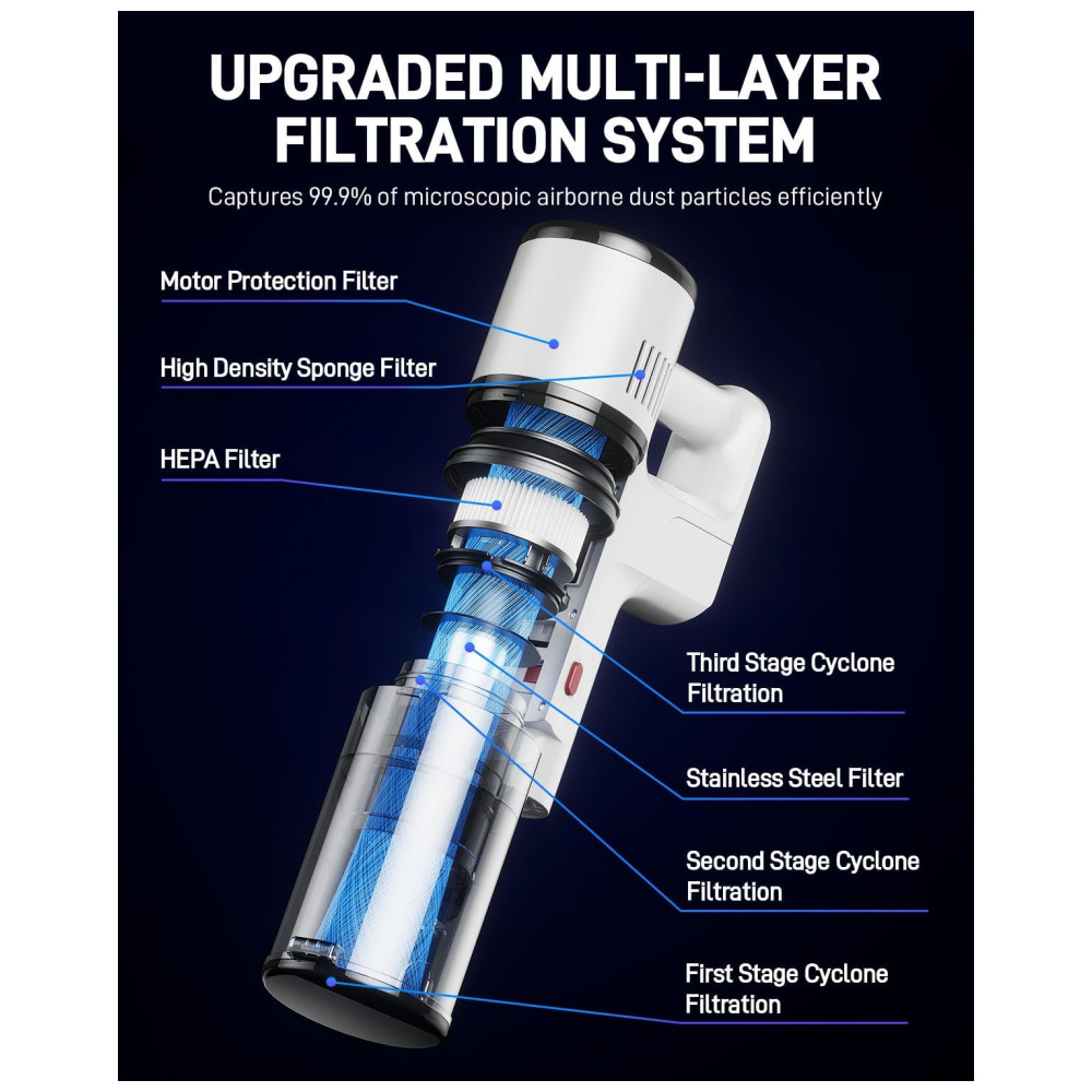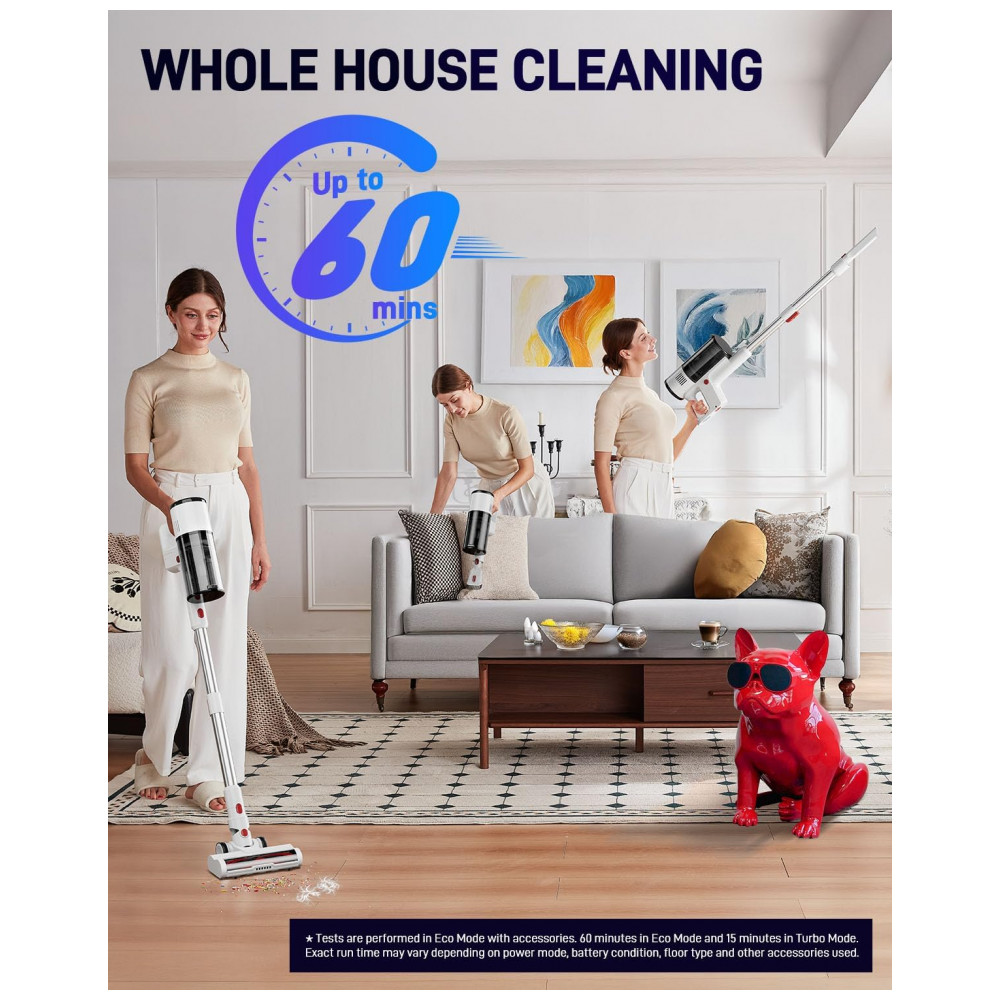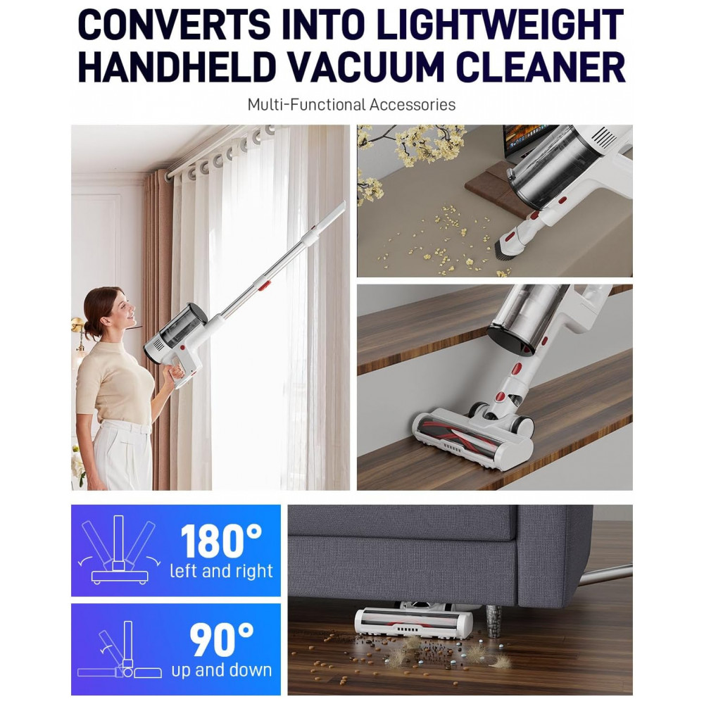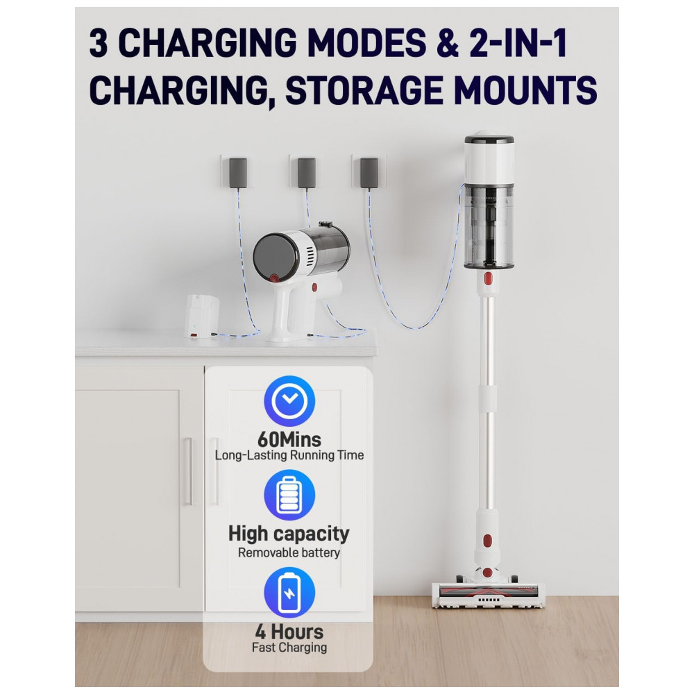 Aspirador de Pó Sem Fio 550W 45 KPa para Pelos de Animais Tapetes e Pisos de Madeira – 60 Min de Autonomia Filtro HEPA Leve e Recarregável – Branco