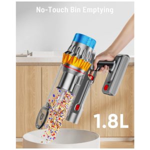Característica Especial: Sucção forte de 50KPa, Motor sem escovas de 600W, Autônomo, Até 65 minutos de autonomia, Luz LED verde, Carregamento montado na parede, Escova anti-emaranhado em forma de V, Tela LED inteligente, Copo de poeira de 1,8L, Sistema de filtragem de 8 camadas,
