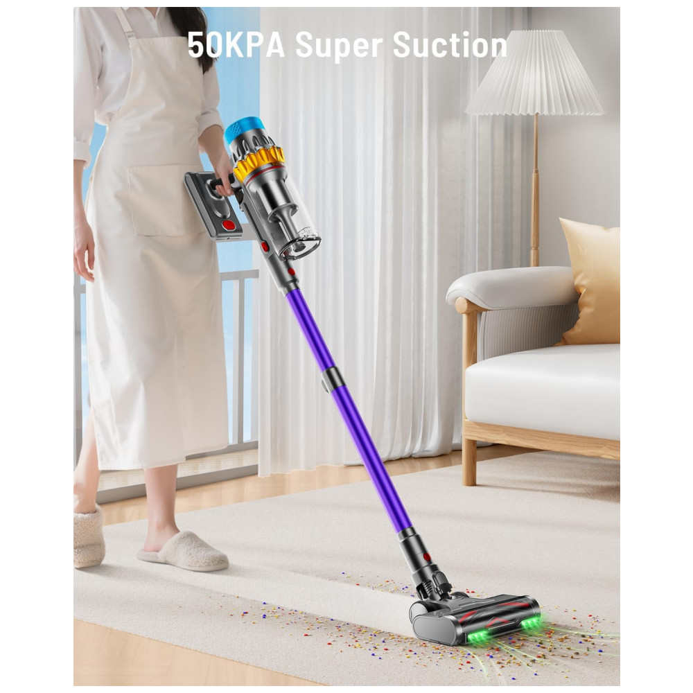 Aspirador de Pó Sem Fio 600W 50KPA 70Min Aspirador Potente para Casa Design Autônomo Tela OLED Anti-Emaranhados Copo 1.8L JRFYHFT