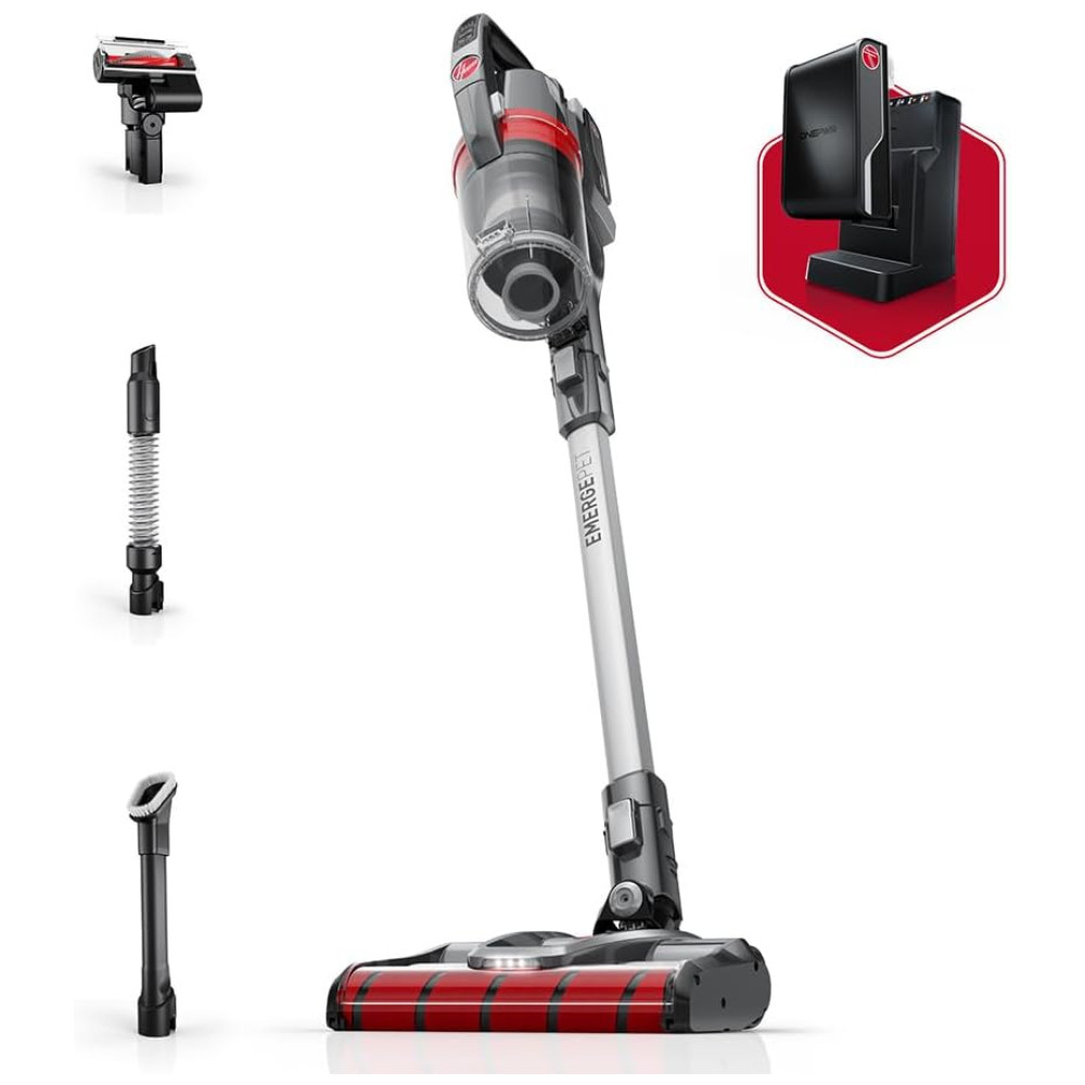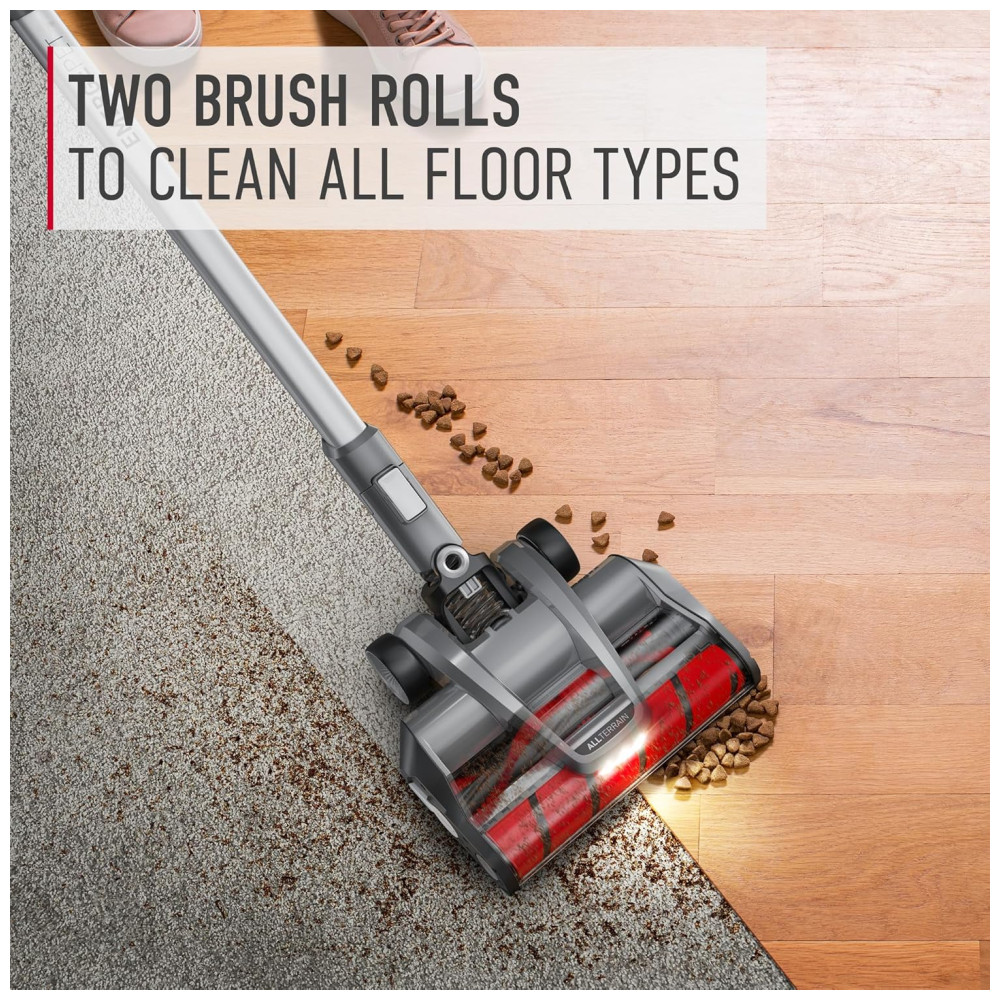 Aspirador de Pó sem Fio com 2 Baterias Rolo de Escova Duplo Todo os Pisos 110V Hoover Emerge Pet Prata