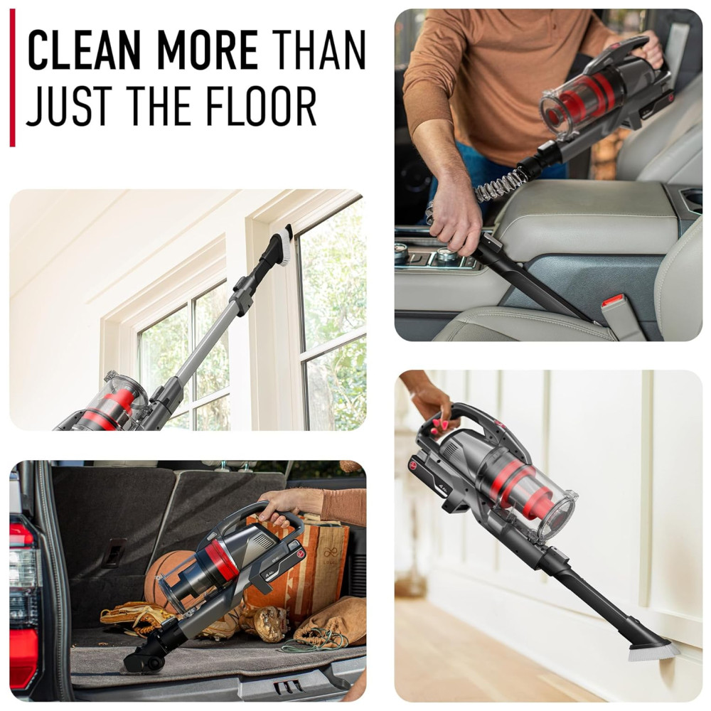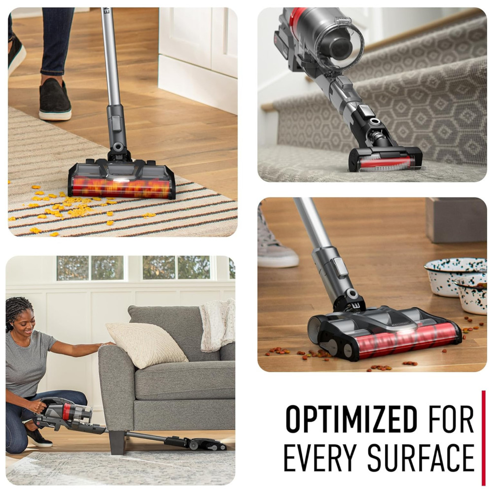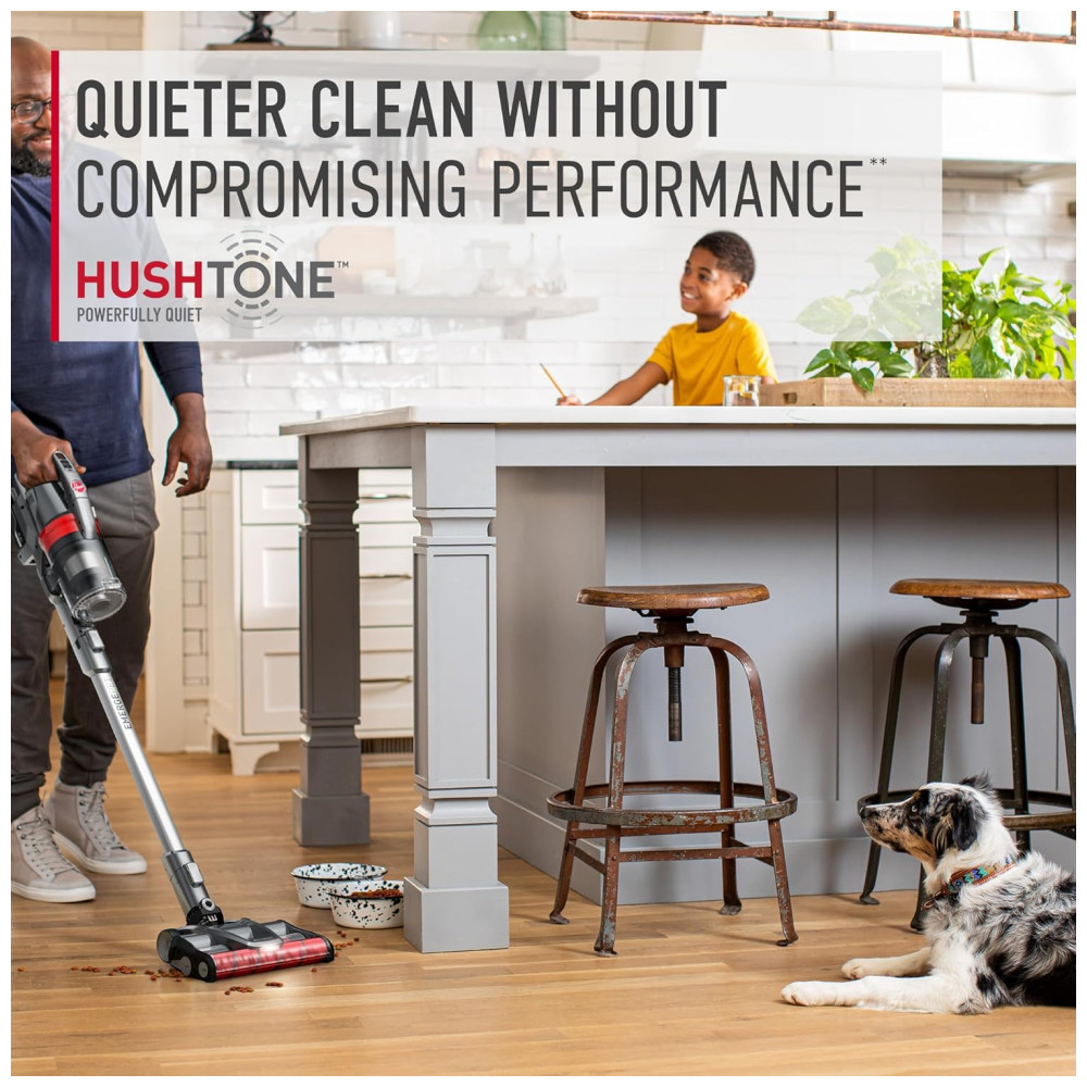O sistema de aspirador HUSHTONE é projetado para fornecer uma limpeza poderosa e silenciosa, sem comprometer o desempenho. A tecnologia DustVault utiliza um sistema de separação ciclônica dupla, capaz de capturar e conter 99,4 da poeira e partículas finas, sem perda de sucção. O bico AllTerrain é capaz de fazer a transição perfeita entre tipos de piso, enquanto dois rolos de escova trabalham juntos para coletar tudo, desde poeira fina até detritos grandes. Além disso, o aspirador é versátil, permitindo a limpeza de áreas de difícil acesso e escadas de estofados com ferramentas especializadas, convertendo o em um aspirador portátil. O sistema de bateria ONEPWR fornece até 90 minutos de autonomia com 2 baterias incluídas. A conveniência da limpeza sem fio é alimentada por uma bateria de íon de lítio ONEPWR removível e recarregável.