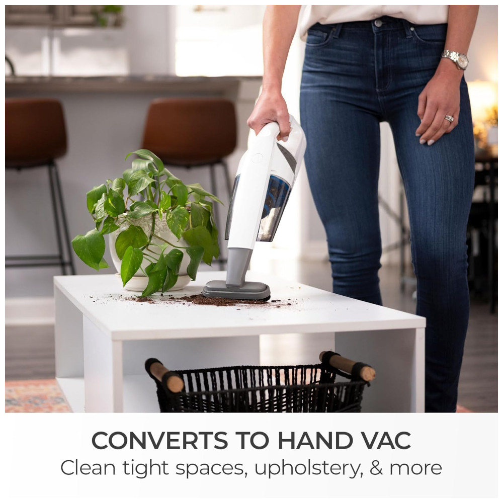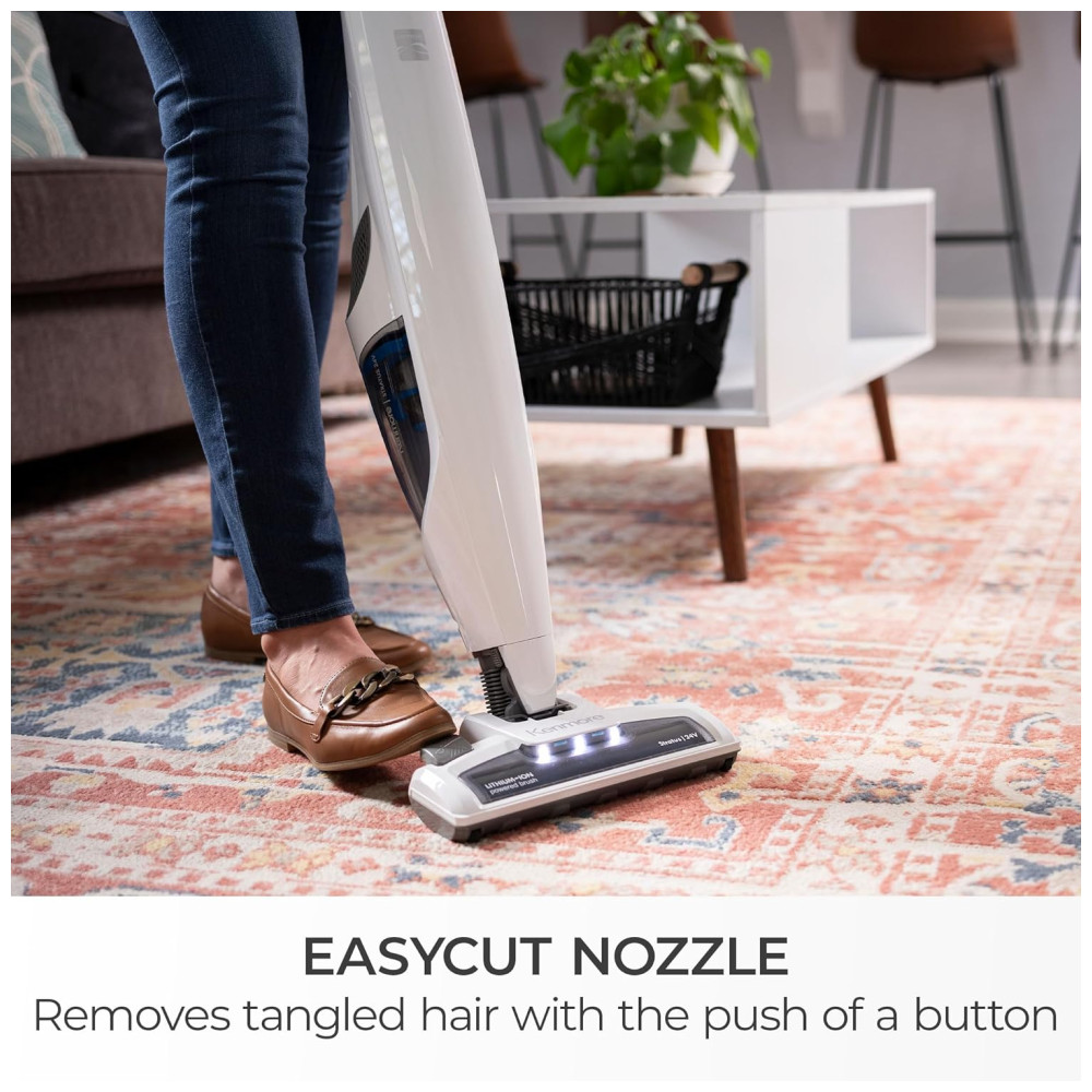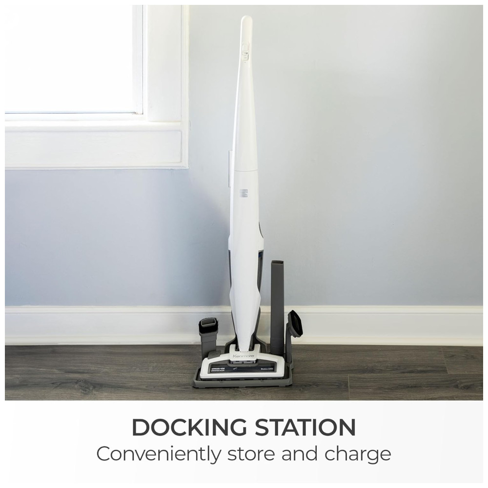 Descubra o Aspirador Vertical Sem Fio Kenmore DS1030, um limpador leve e versátil para carpetes e pisos lisos. Equipado com duas configurações de velocidade, este aspirador facilita a remoção de pelos de animais, a limpeza de sujeiras e a eliminação de poeira de maneira rápida e eficiente. Com uma autonomia de até 45 minutos no Modo Eco, oferece uma solução prática para a sua casa.