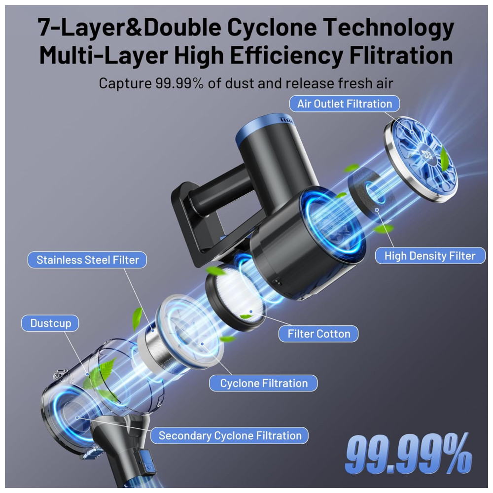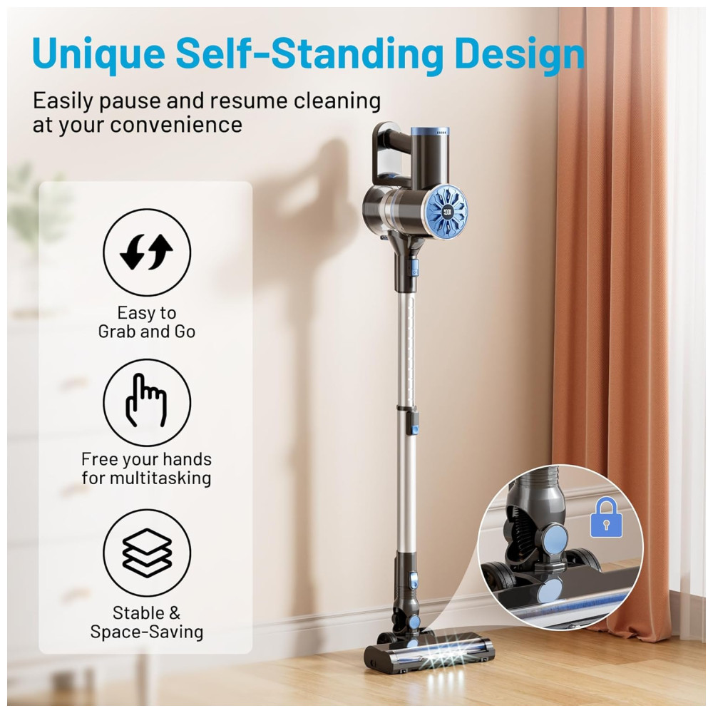 Liberte suas mãos com o inovador aspirador de pó vertical sem fio da VIPSUN. Com uma potente sucção de até 30Kpa, este aspirador leve e autônomo é ideal para limpar tapetes, pelos de animais e sujeira em pisos duros. Seu design autoportante permite que você o deixe em pé durante a limpeza, sem precisar encostá-lo em paredes ou móveis. Equipado com indicador de bateria e filtro de alta eficiência, garantindo um ambiente mais limpo. Além disso, possui vários acessórios para limpeza completa de cantos e espaços apertados.