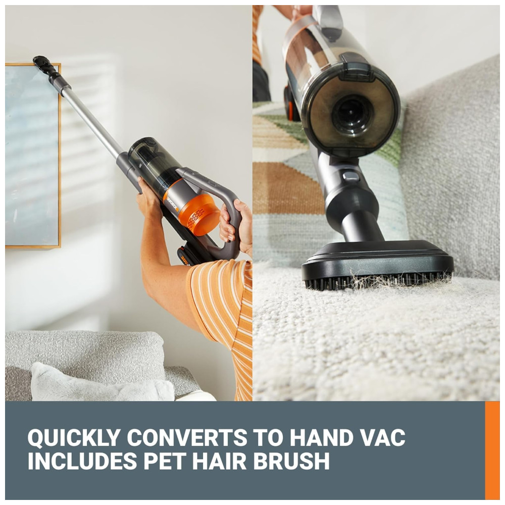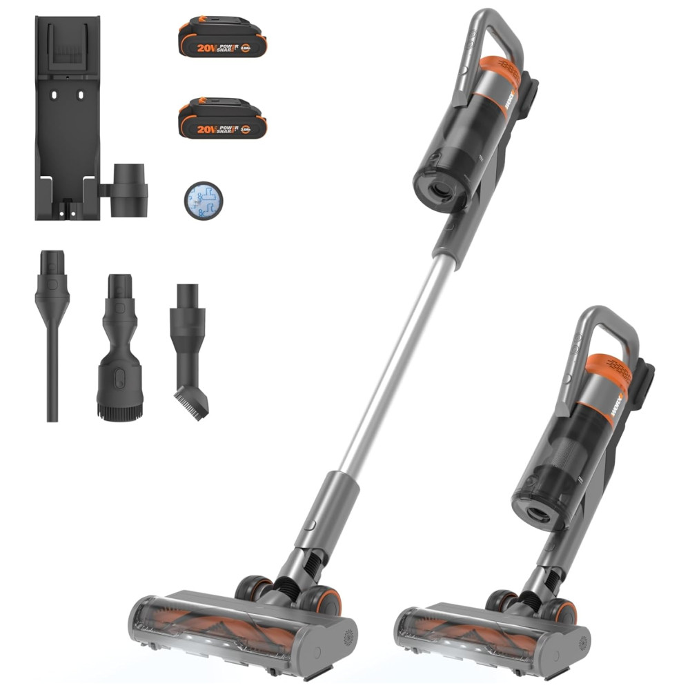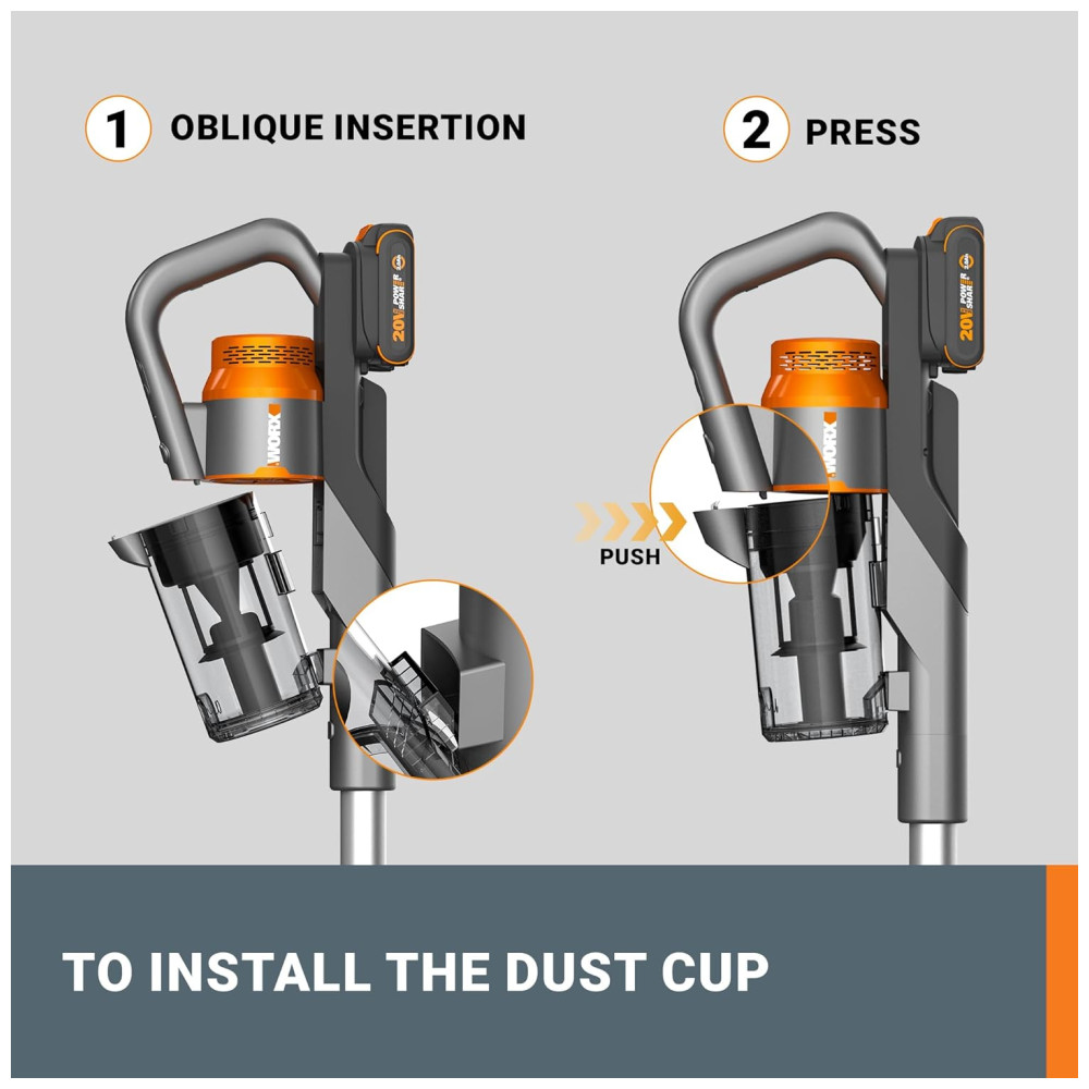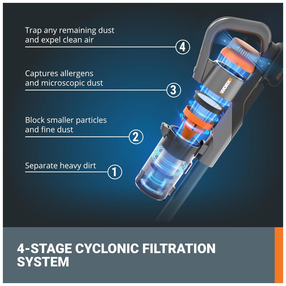 Aspirador de pó Sem Fio com Bateria Recarregável 20V de Alta Sucção de 25Kpa para Limpeza Eficiente de Pelos de Animais 110V WORX Cinza