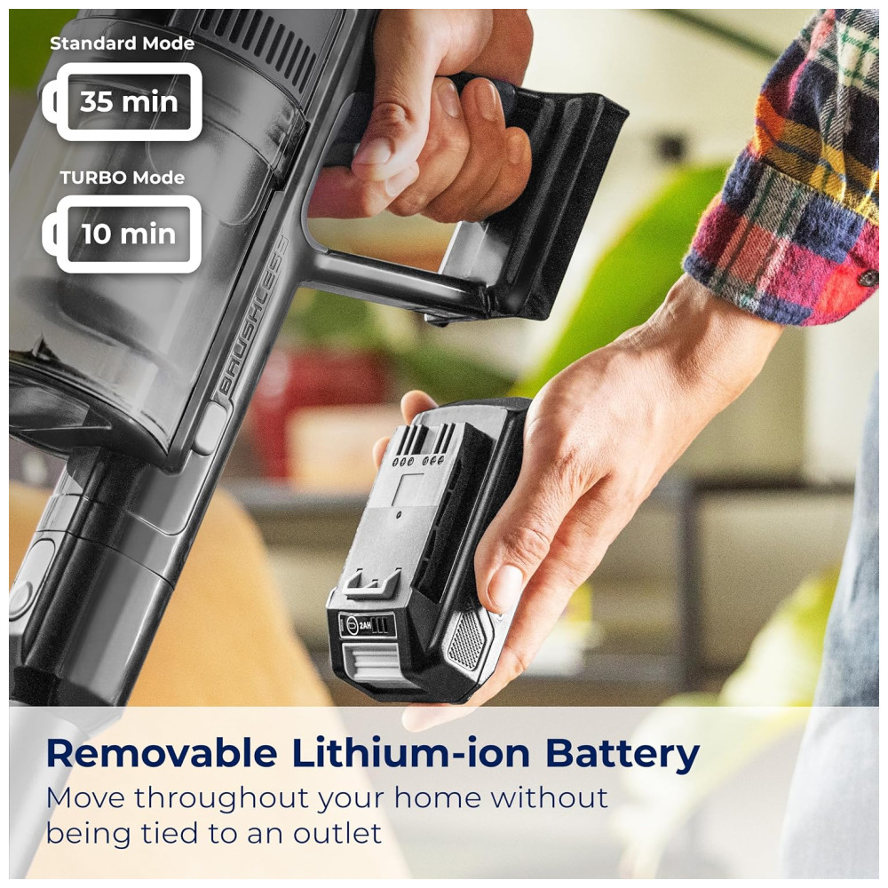 O aspirador sem fio BISSELL CleanView XR é o produto ideal para limpar sua casa do chão ao teto. Com uma bateria removível de íon de lítio, este poderoso limpador é fácil de armazenar e carregar, e oferece até 35 minutos de autonomia. O motor do CleanView XR é 40 vezes mais potente que o concorrente Shark WANDVAC, e possui três modos de limpeza para garantir uma limpeza eficaz. Além disso, o aspirador pode ser facilmente convertido em um aspirador portátil, com uma escova para pó e uma ferramenta para fendas para limpar pequenas áreas onde a sujeira se acumula. O recurso de direção giratória e faróis de LED facilitam a localização da sujeira escondida. A BISSELL apoia a BISSELL Pet Foundation, que ajuda a salvar animais de estimação desabrigados. Compre um produto BISSELL e ajude a apoiar essa causa. O aspirador também possui um rolo de escova sem tanglefree, sistema de alérgenos SmartSeal e ferramentas especiais, como uma escova de cerdas e uma ferramenta para fendas para limpeza de espaços apertados acima do piso. O CleanView XR pode ser montado na parede para armazenamento conveniente ou usado como carregador independente em qualquer lugar.