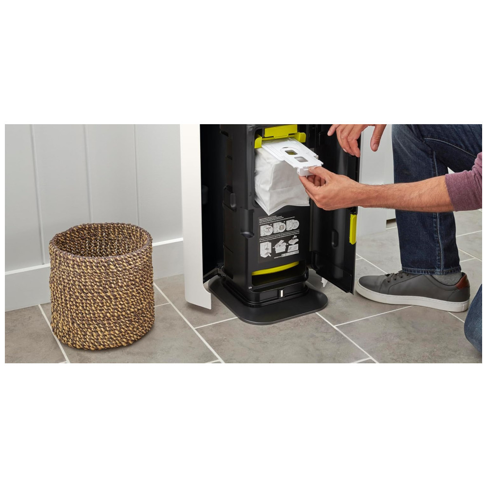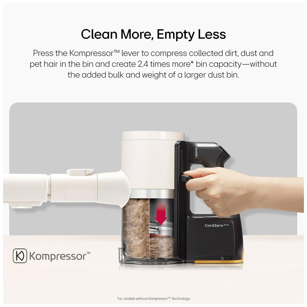 O LG Kompressor permite compactar sujeira e poeira, reduzindo a necessidade de esvaziar o coletor de lixo com frequência.