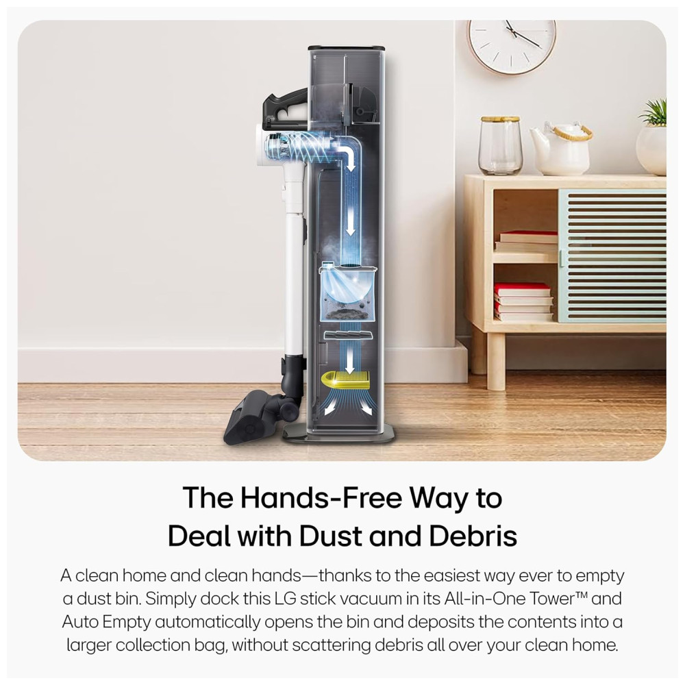 – Nome do modelo: LG CordZero A931KWM All in One Cordless Stick Vacuum com esvaziamento automático e novo bico máximo de piso duplo