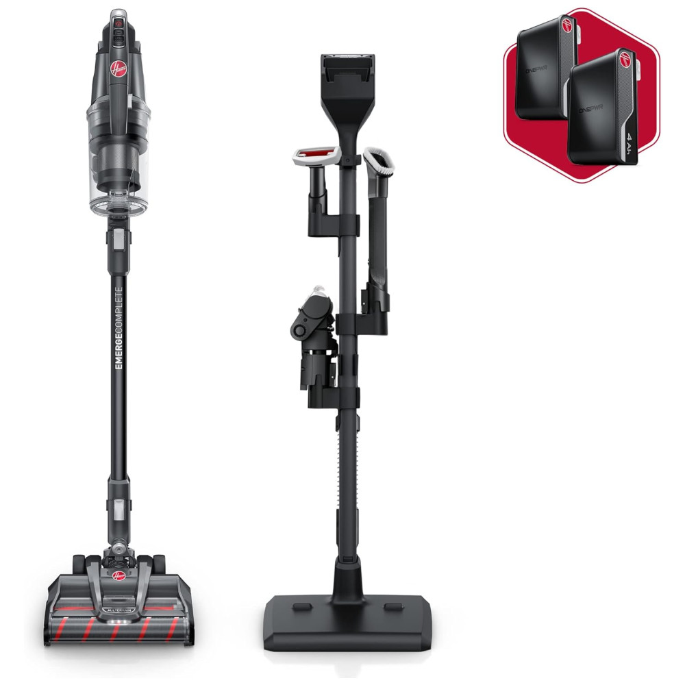 Aspirador de Pó sem Fio com Rolo de Escova Duplo para Todos os Pisos 2 Baterias 110V Hoover Emerge Preto