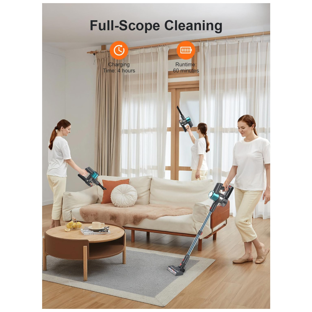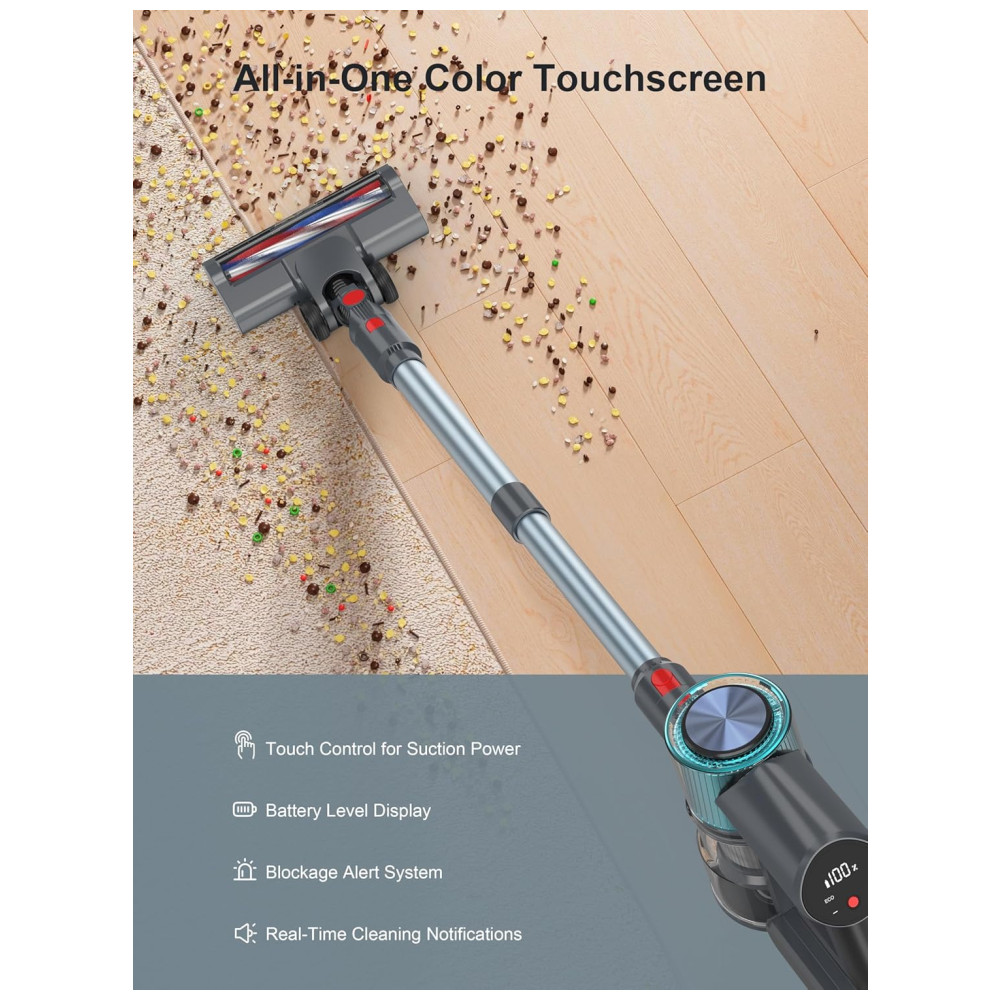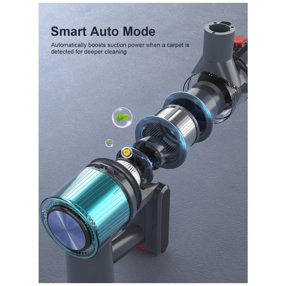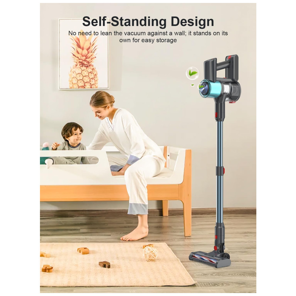 Desfrute de uma limpeza profunda com a potente sucção de 23KPa deste aspirador de pó sem fio. Equipado com um motor sem escovas de alta eficiência, ele oferece 45.000Pa de sucção forte para remover poeira, detritos e pelos de animais facilmente, sendo perfeito para carpetes, pisos de madeira e azulejos. Com até 35 minutos de autonomia, bateria removível de 7 células e design autônomo, este aspirador é prático e eficiente. O sistema avançado de filtragem HEPA de 5 estágios captura 99,99% de poeira fina e alérgenos, tornando o ar mais limpo e saudável. Além disso, vem com acessórios para limpeza versátil, carregamento flexível e motor silencioso. Adquira já o seu!