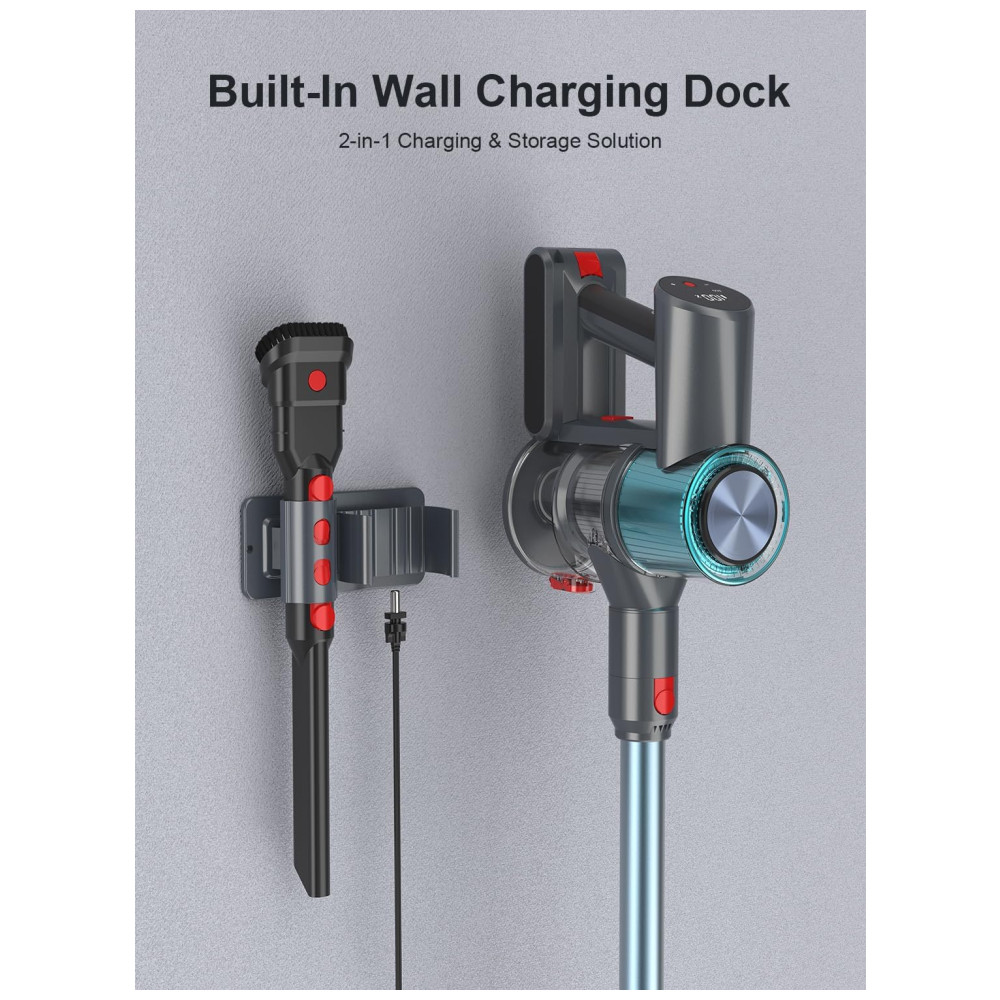 Aspirador de Pó sem Fio GGV Autonomia de 35 Min Design Autônomo c/ Base de Carregamento Parede 3 Modos p/ pelos de Animais Tapetes e Pisos – Azul
