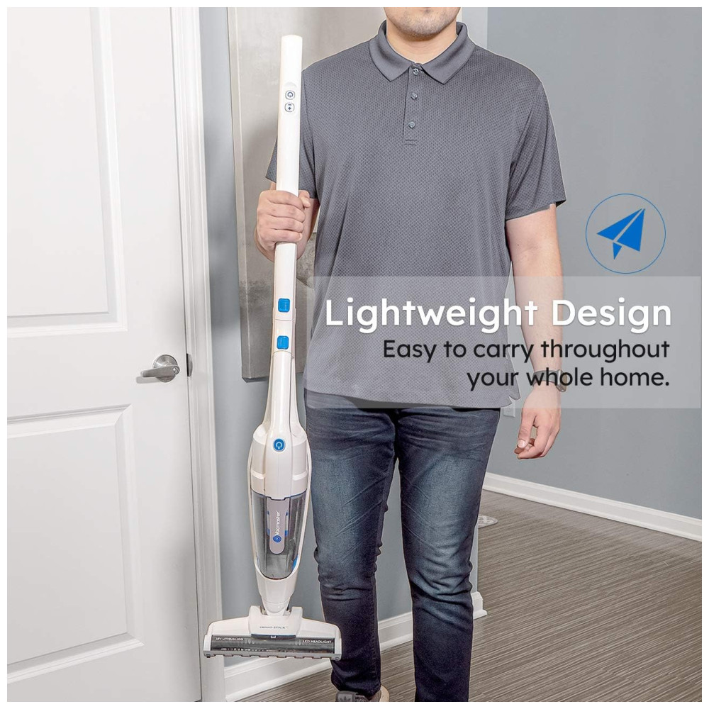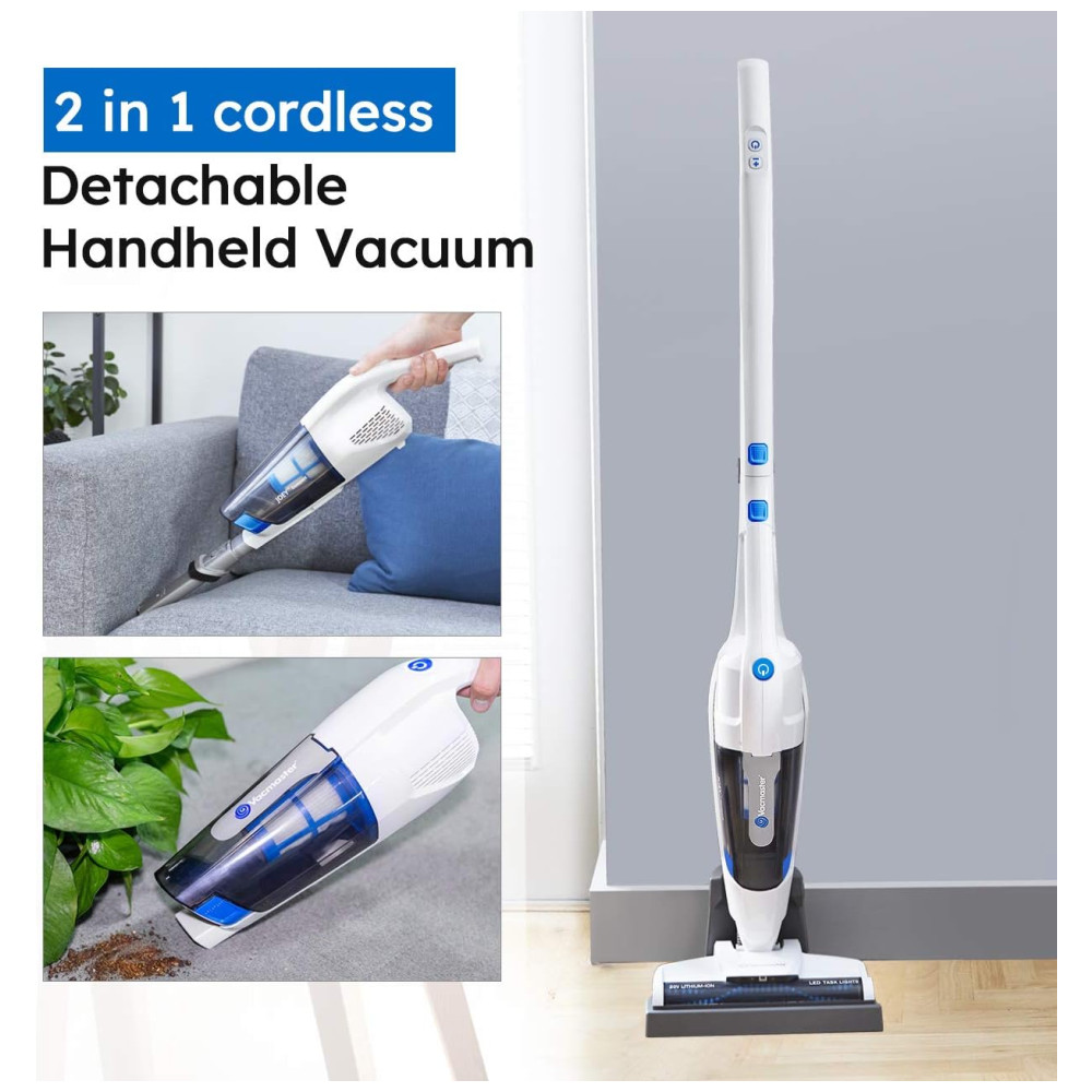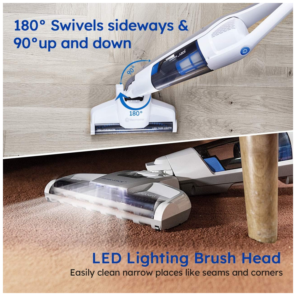 O Vácmaster Stick Vacuum é um aspirador de operação multifuncional que possui um design sem fio, permitindo a limpeza em carpetes, sofás, escadas, peitoris de janela e qualquer outra superfície da casa e carro. O filtro HEPA lavável captura as menores partículas de poeira e requer substituições menos frequentes. Com farol LED dobrável e giratório flexível, o aspirador é capaz de manobrar a sujeira sob móveis e cantos inacessíveis. A alça dobrável fornece armazenamento compacto para espaços pequenos. O aspirador possui bateria Liion de 2200mAh com 2 modos de velocidade ajustáveis, funcionando até 30 minutos após 5 horas de carga completa. Com design leve de 2,27 Quilos, o aspirador é fácil de transportar, armazenar e operar. O copo de pó Easyempty torna as viagens para o lixo mais rápidas e fáceis. Além disso, o aspirador vem com ferramentas especiais para limpar áreas de difícil acesso.