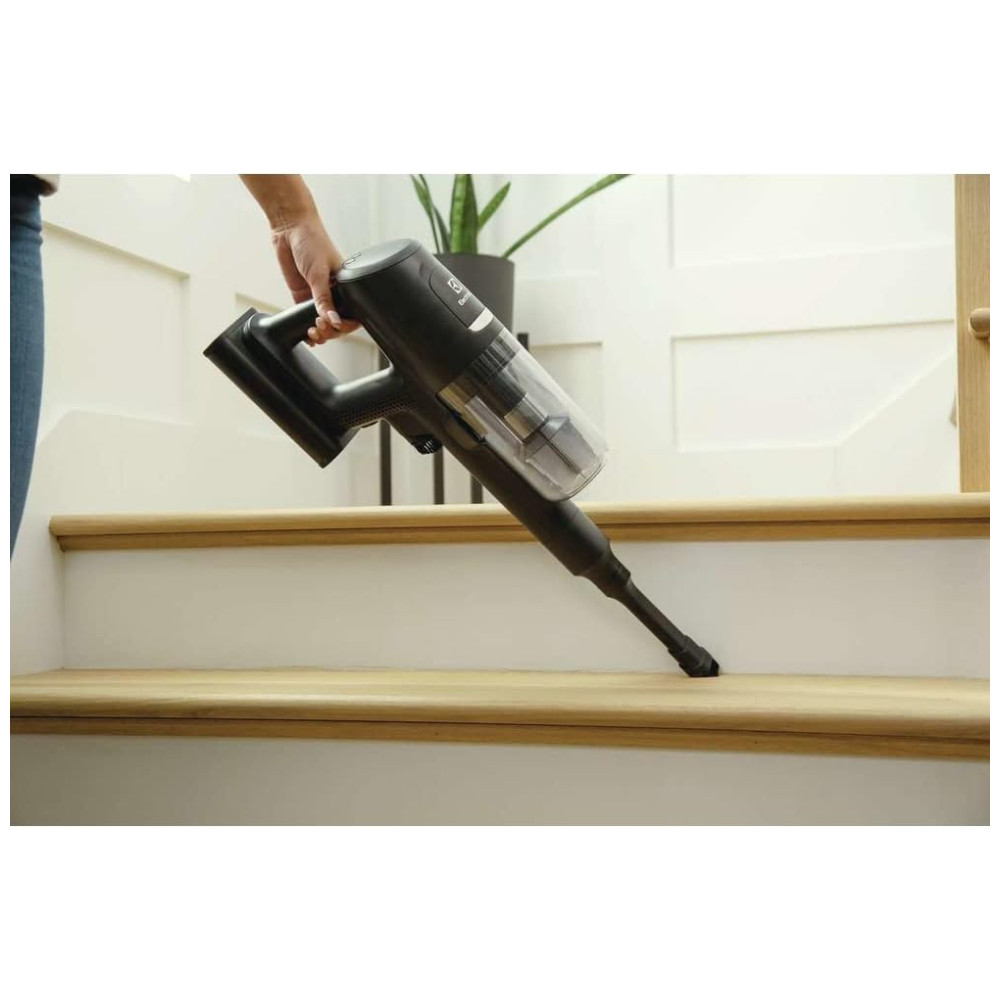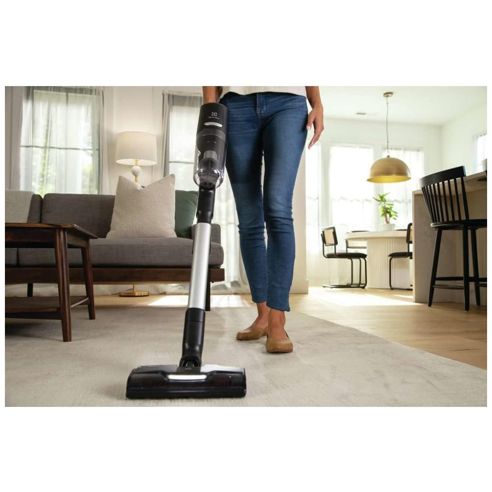 O aspirador sem fio Electrolux Ultimate800 é perfeito para quem precisa de uma limpeza rápida e eficiente. Com o bocal de cerdas PowerPro e a sucção poderosa, ele garante uma limpeza completa em qualquer superfície, removendo até mesmo poeira fina e sujeira de carpetes, madeira e outros tipos de pisos comuns. Além disso, a tecnologia BrushRoll Clean permite que você remova facilmente pêlos e fibras teimosos do bocal de cerdas com o simples toque de um botão. O sistema de filtragem de 5 etapas com tecnologia ciclônica integrada separa e coleta eficientemente sujeira e poeira antes de filtrar o ar através das camadas de filtração restantes, garantindo uma limpeza completa e eficiente. Com uma sucção poderosa, você pode ter certeza de que o aspirador fará um excelente trabalho, independentemente da superfície. E com até 60 minutos de tempo de funcionamento na unidade manual com a bateria totalmente carregada na potência mínima, você terá tempo suficiente para limpar toda a casa. Para otimizar ainda mais o tempo de execução ao usar um bocal motorizado, selecione o Modo Automático, que detecta o tipo de piso e ajusta a sucção de acordo.