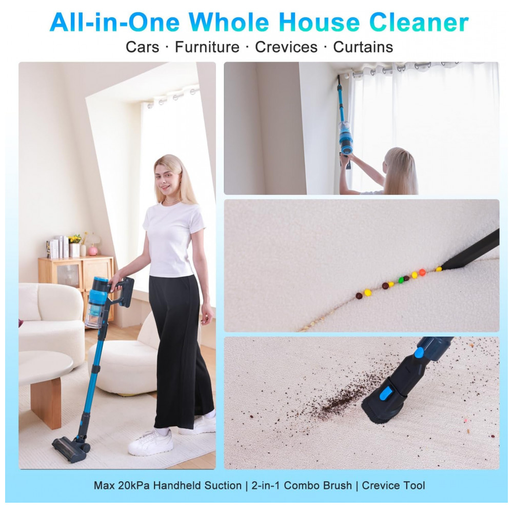 Aspirador de Pó Sem Fio PRAVOLE 250W 38kPa 65Min 8 em 1 para Casa Recarregável para pelos de Animais e Pisos Difíceis 12L de Capacidade