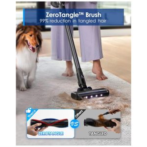A escova ZeroTangle é especialmente projetada para evitar o emaranhamento dos cabelos. Ela alcança e prende eficazmente os pelos sem se enrolar, tornando a limpeza da escova uma tarefa simples, ideal para donos de animais de estimação.