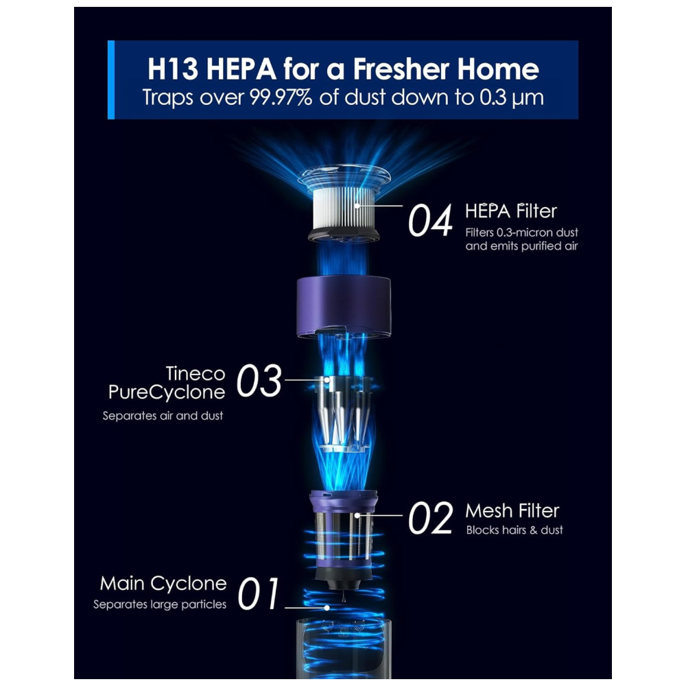 O sensor inteligente Tineco iLoop oferece sucção precisa, ajustando automaticamente a potência de sucção de acordo com a quantidade de poeira detectada. Isso melhora a eficiência da limpeza, enquanto a estação otimiza o tempo de autolimpeza com base no nível de sujeira para uma limpeza profunda e completa.