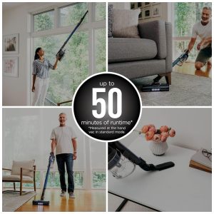 50 MINUTOS DE AUTONOMIA: Com uma bateria removível que oferece até 50 minutos de autonomia no modo padrão do aspirador de mão.