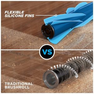 Escova POWERFINS: Com um contato de limpeza contínuo que penetra profundamente em carpetes e limpa os pisos de maneira eficaz.