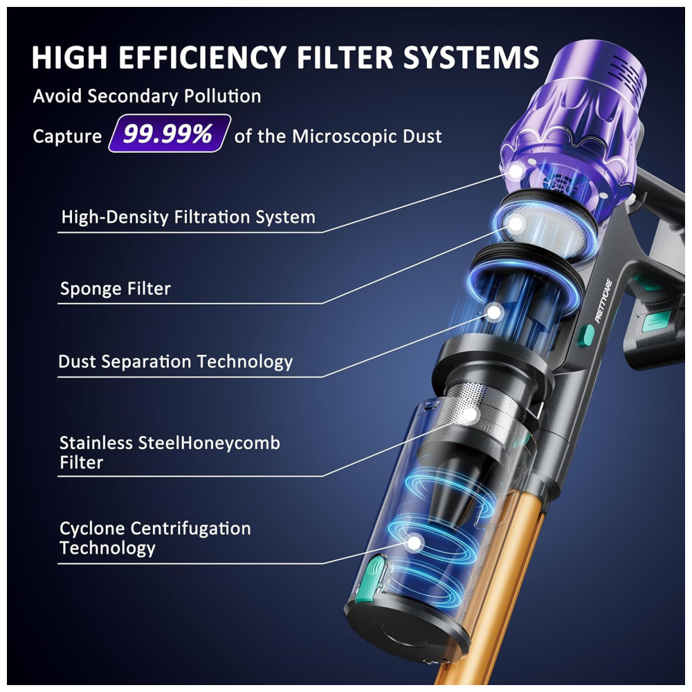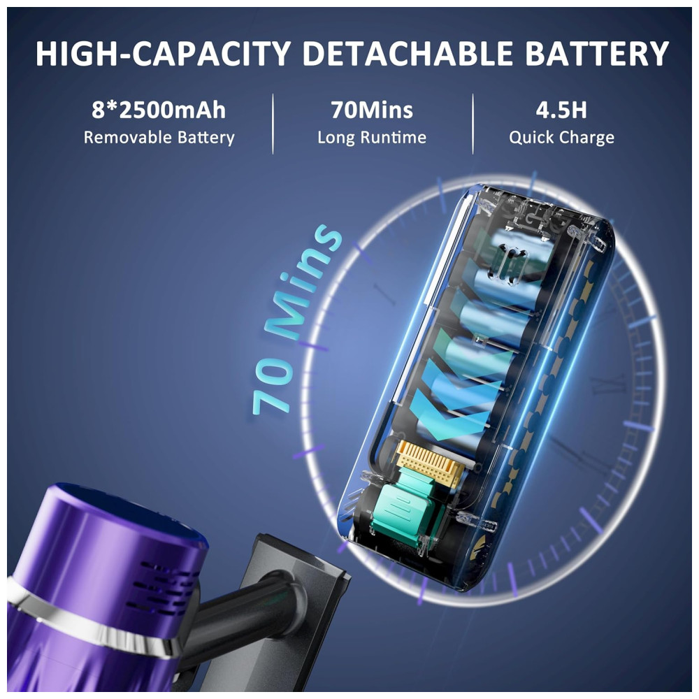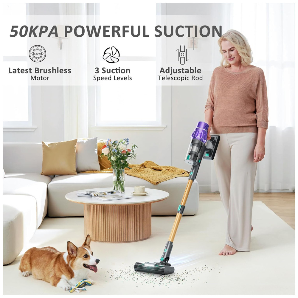 Aspirador de Pó sem Fio VENHIDELY 50kPa – Potência de Sucção 500mbar – Bateria Duradoura – Display LED – 2 em 1 para Carpetes e Pisos